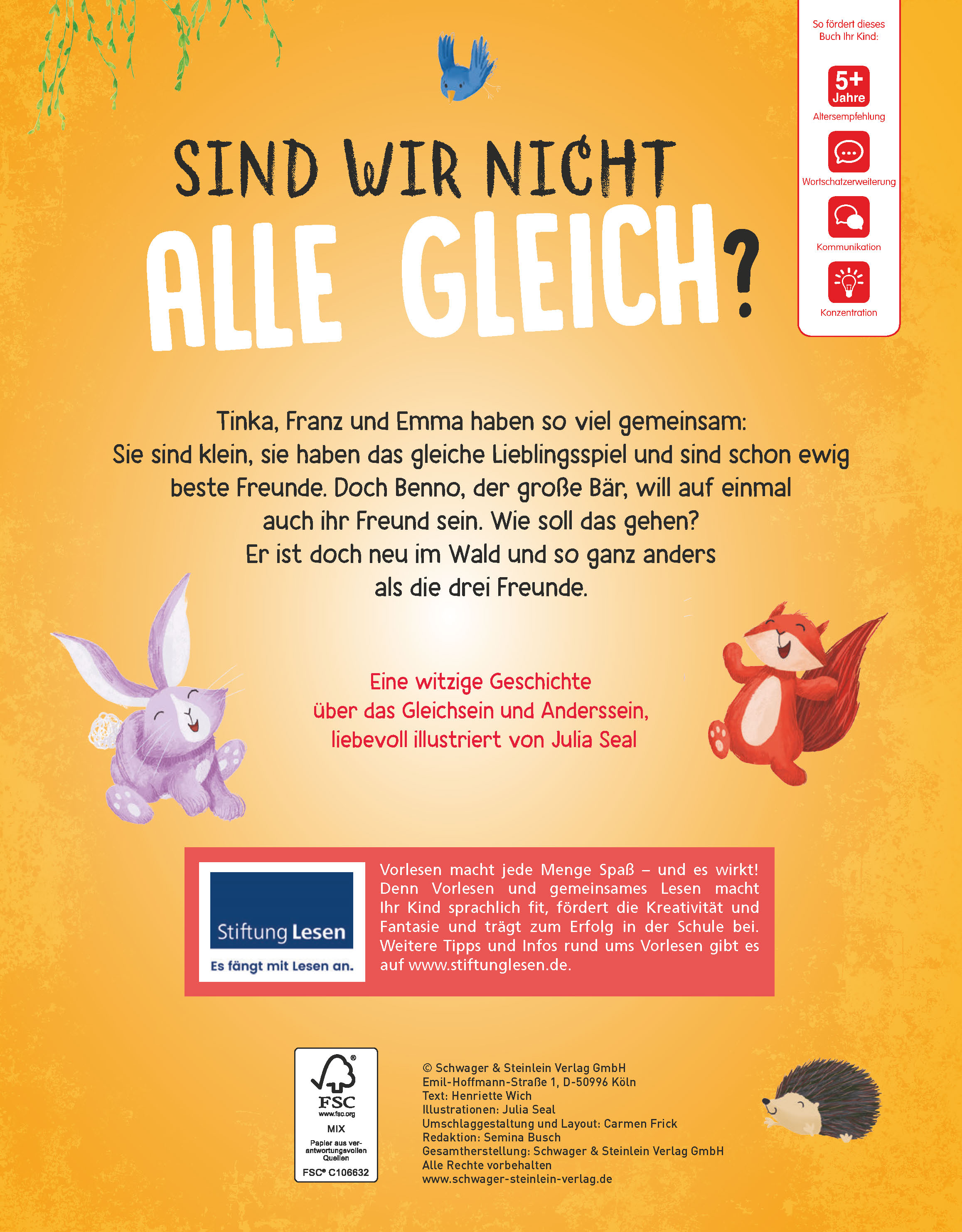 | Schlagworte | ab 5 Jahren • Bilderbuch • _Bilderbuch über Anderssein • Bilderbuch über Anderssein • Diversität • Erstleser • Freundschaft • Geschenk ab 5 • Geschichte • Gutenachtgeschichte • Kinderbuch • Kindergarten • Lesebuch • Lesen • Stitung Lesen • Tiere • Vorlesen |