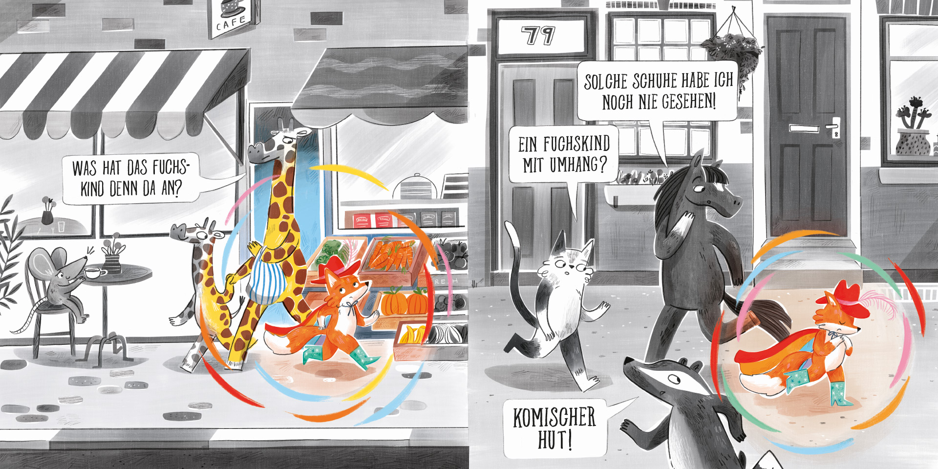 Finni ist ein Fuchskind mit Stil - bereit, in Regenbogenumhang und Piratenstiefeln unsere bunte Welt zu erobern! Doch nicht allen gefällt, was Finni trägt. Und das tut manchmal ganz schön weh. Je mehr das Fuchskind versucht, sich zu ändern, desto unglücklicher wird es. Und nicht nur Finni! Auch Finnis Freundinnen und Freunde vermissen die bunten Outfits, ohne die ihre Welt so viel grauer erscheint. Vielleicht ist es an der Zeit, den Regenbogenumhang wieder hervorzuholen?