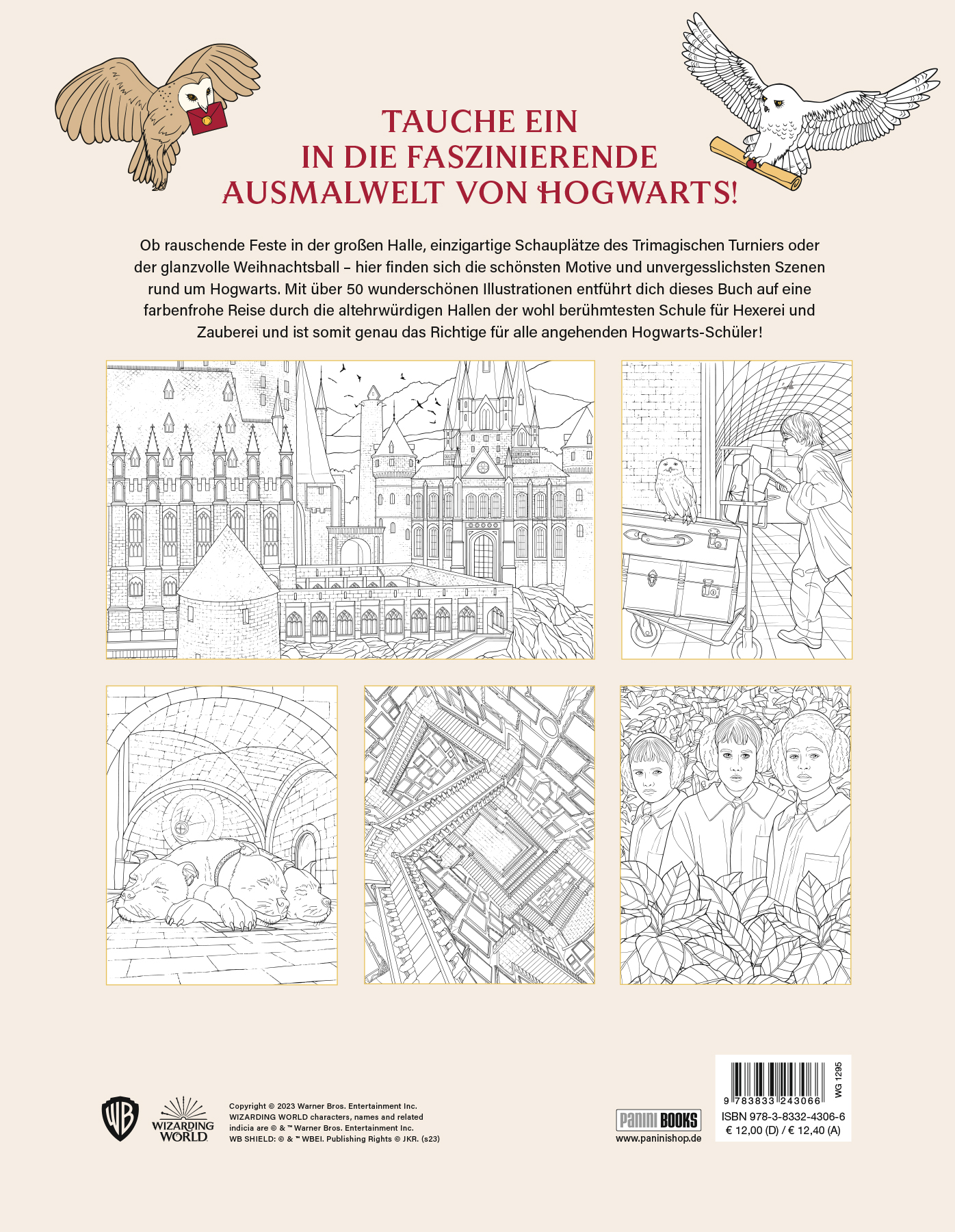 Tauche ein in die faszinierende Ausmalwelt von Hogwarts!Ob rauschende Feste in der großen Halle, einzigartige Schauplätze des Trimagischen Turniers oder der glanzvolle Weihnachtsball - hier finden sich die schönsten Motive und unvergesslichsten Szenen rund um Hogwarts. Mit über 50 wunderschönen Illustrationen entführt dich dieses Buch auf eine farbenfrohe Reise durch die altehrwürdigen Hallen der wohl berühmtesten Schule für Hexerei und Zauberei und ist somit genau das Richtige für alle angehenden Hogwarts-Schüler!