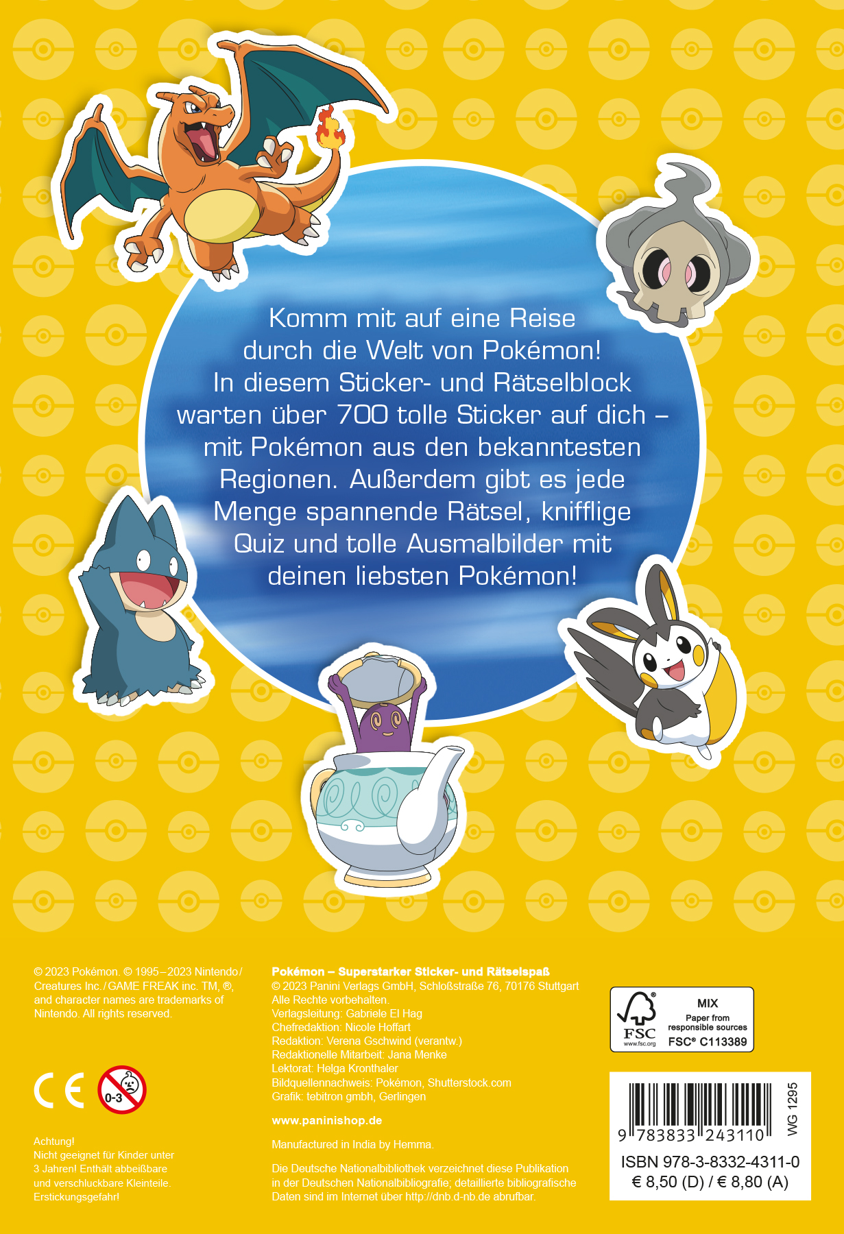 Komm mit auf eine Reise durch die Welt von Pokémon! In diesem Sticker- und Rätselblock warten über 700 tolle Sticker auf dich - Mit Pokémon aus den bekanntesten Regionen. Außerdem gibt es jede Menge spannende Rätsel, knifflige Quiz und tolle Ausmalbilder mit deinen liebsten Pokémon!