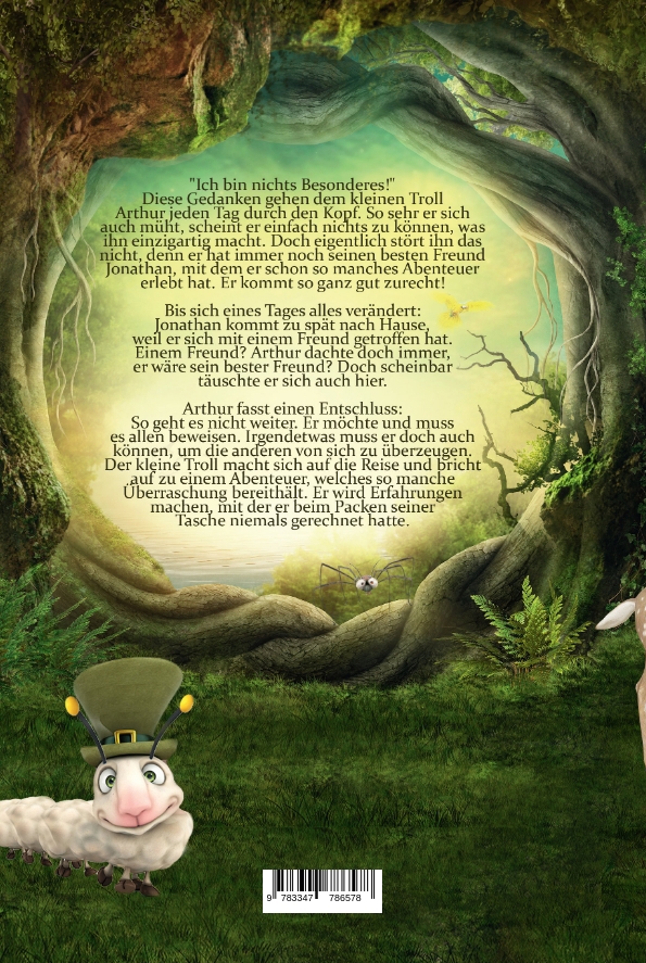 Entdecken Sie "Ein Troll kommt selten allein" - ein herzerwärmendes und inspirierendes Kinderbuch, das die Geschichte von Arthur, einem kleinen Troll, und seinem besten Freund Jonathan erzählt. Dieses Buch nimmt junge Leserinnen und Leser mit auf eine abenteuerliche Reise durch eine Welt voller Freundschaft, Mut und der Erkenntnis, dass jeder von uns etwas ganz Besonderes ist.Warum dieses Buch in keinem Kinderzimmer fehlen sollte:Starke Botschaft über Selbstwertgefühl und Freundschaft: Arthur zeigt, dass der Glaube an sich selbst und echte Freundschaft mehr zählt als jedes Talent oder jede Fähigkeit.Spannende Abenteuer: Begleiten Sie Arthur auf seiner Reise, auf der er nicht nur neue Freunde findet, sondern auch seine eigenen Stärken entdeckt.Förderung der Lesemotivation: Mit seiner packenden Geschichte und den sympathischen Charakteren motiviert das Buch Kinder dazu, ihre Lesefähigkeiten zu verbessern und die Freude am Lesen zu entdecken.Lebensnahe Themen: Es behandelt Themen, mit denen sich Kinder identifizieren können, wie Eifersucht, Selbstzweifel und die Suche nach Anerkennung, verpackt in eine fesselnde und unterhaltsame Geschichte.Wertvolle Lektionen: Kinder lernen die Bedeutung von Zusammenhalt, Mut und der Kraft der Freundschaft, die Berge versetzen kann.Ideal für Vorlesestunden und Selbstleser: "Ein Troll kommt selten allein" eignet sich hervorragend zum Vorlesen oder als Lektüre für junge Selbstleser.Perfektes Geschenk: Ob zum Geburtstag, zu Weihnachten oder einfach als Überraschung - dieses Buch ist ein wunderbares Geschenk, das Kindern wichtige Lebenslektionen auf eine zugängliche und unterhaltsame Weise vermittelt.Machen Sie sich bereit für "Ein Troll kommt selten allein" und erleben Sie ein Kinderbuch, das nicht nur unterhält, sondern auch inspiriert, bildet und Herzen berührt.Sichern Sie sich jetzt Ihr Exemplar und begleiten Sie Arthur auf seinem Weg zu Selbstakzeptanz und wahrer Freundschaft!