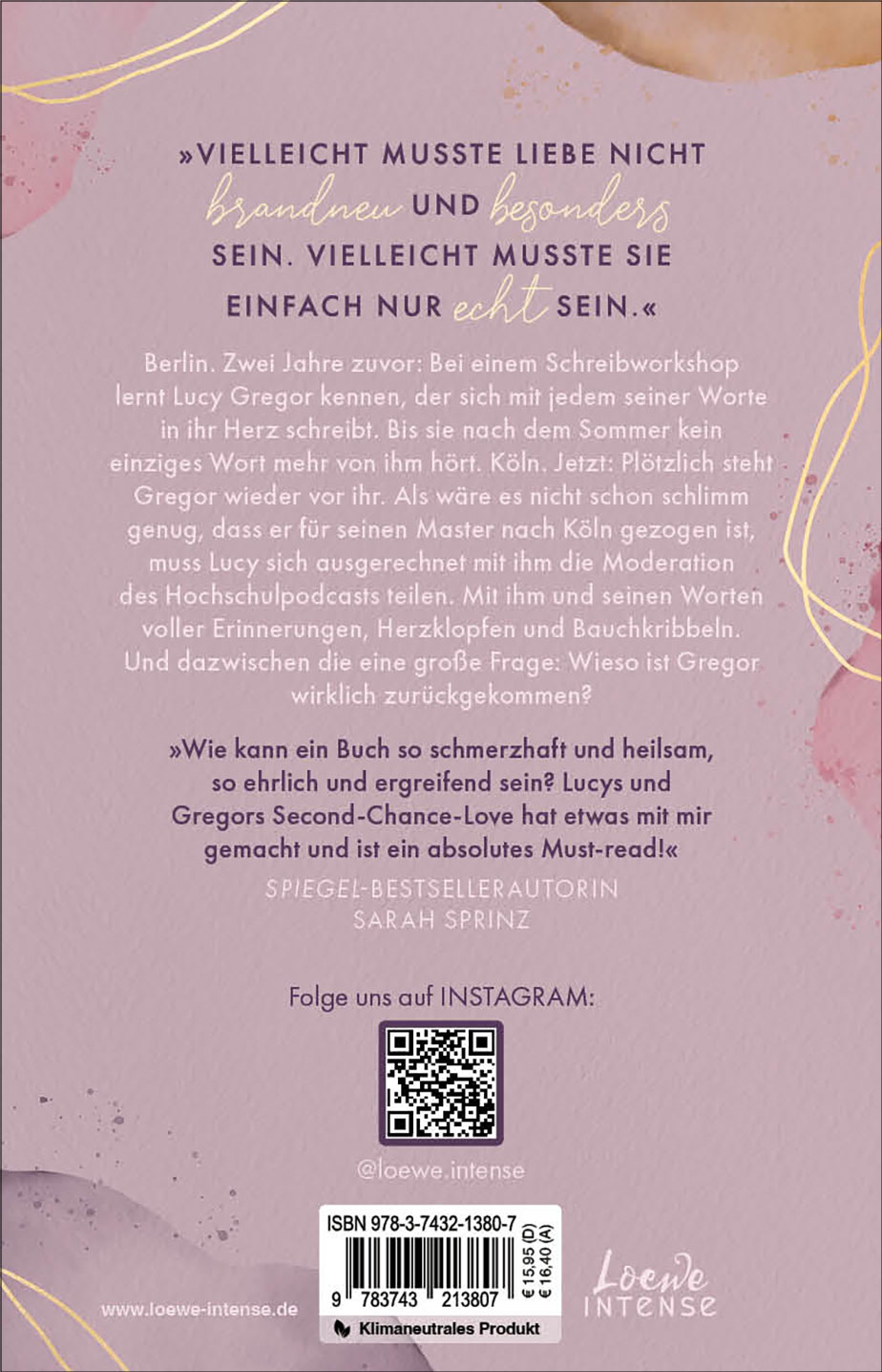 Berlin. Zwei Jahre zuvor: Bei einem Schreibworkshop lernt Lucy Gregor kennen. Gregor, den Einzelgänger. Gregor, den Schriftsteller. Gregor, der sich mit jedem seiner Worte in Lucys Herz schreibt. Bis sie nach dem Sommer kein einziges Wort mehr von ihm hört. Köln. Jetzt: Plötzlich steht er wieder vor ihr. Als wäre es nicht schon schlimm genug, dass Gregor für seinen Master in Kreativem Schreiben nach Köln gezogen ist, muss Lucy ausgerechnet mit ihm den Hochschulpodcast moderieren, der ein so wichtiger Schritt auf dem Weg zu ihrem eigenen Frauenmagazin ist. Was sie weiß: dass Gregor noch immer die gleiche Anziehung auf sie ausübt. Was sie nicht weiß: weshalb er wirklich wieder in ihr Leben getreten ist.