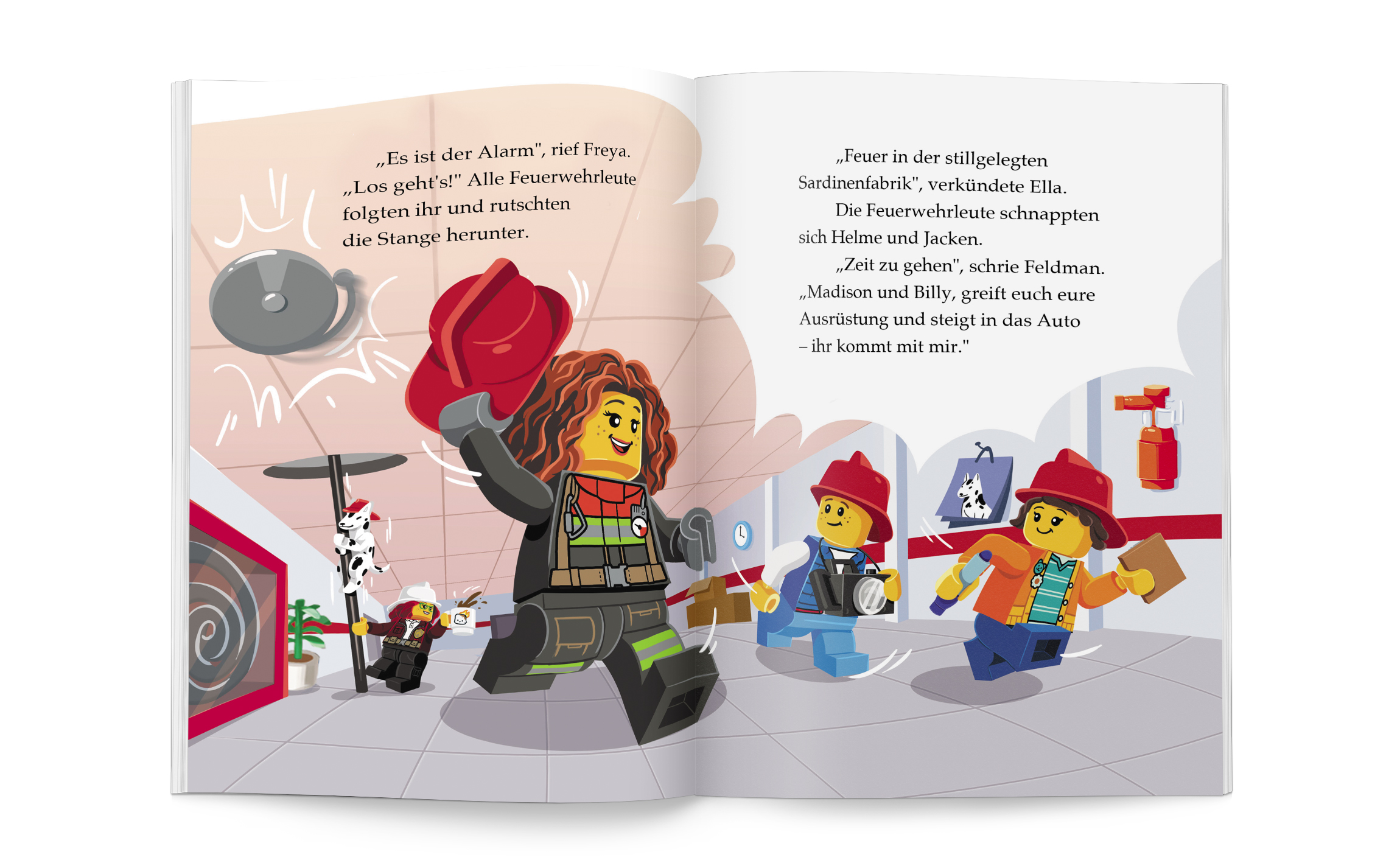 Einblick in die Arbeit der FeuerwehrFortführung der Reihe für LeseanfängerNach "Der Popstar" und "Der Astronaut" dürfen sich LEGO® City Fans über ein neues spannendes Interview mit einer Stadtheldin freuen! Die beiden Nachwuchsjournalisten Madison und Billy von der Zeitung The Daily Mulch interviewen diesmal die Feuerwehrfrau Sarah Feldman. Diese führt die Kinder in der Feuerwache herum, um ihnen die spannende Arbeit der Feuerwehr zu zeigen. Da ertönt plötzlich der Alarm und Madison und Billy dürfen bei einem echten Einsatz dabei sein...Die unterhaltsame Geschichte ist in großer Schrift geschrieben und in lesefreundliche Abschnitte unterteilt. So können Leseanfänger ab 5 Jahren gut folgen. Farbige und handillustrierte Szenen zieren dabei jede Doppelseite. Ein Glossar zu Beginn stellt alle wichtigen Charaktere vor, während eine Leseurkunde und ein Quiz am Ende für zusätzlichen Spaß sorgen. LEGO, the LEGO logo, the Brick and Knob configurations and the Minifigure are trademarks of the LEGO Group. ©2022 The LEGO Group.