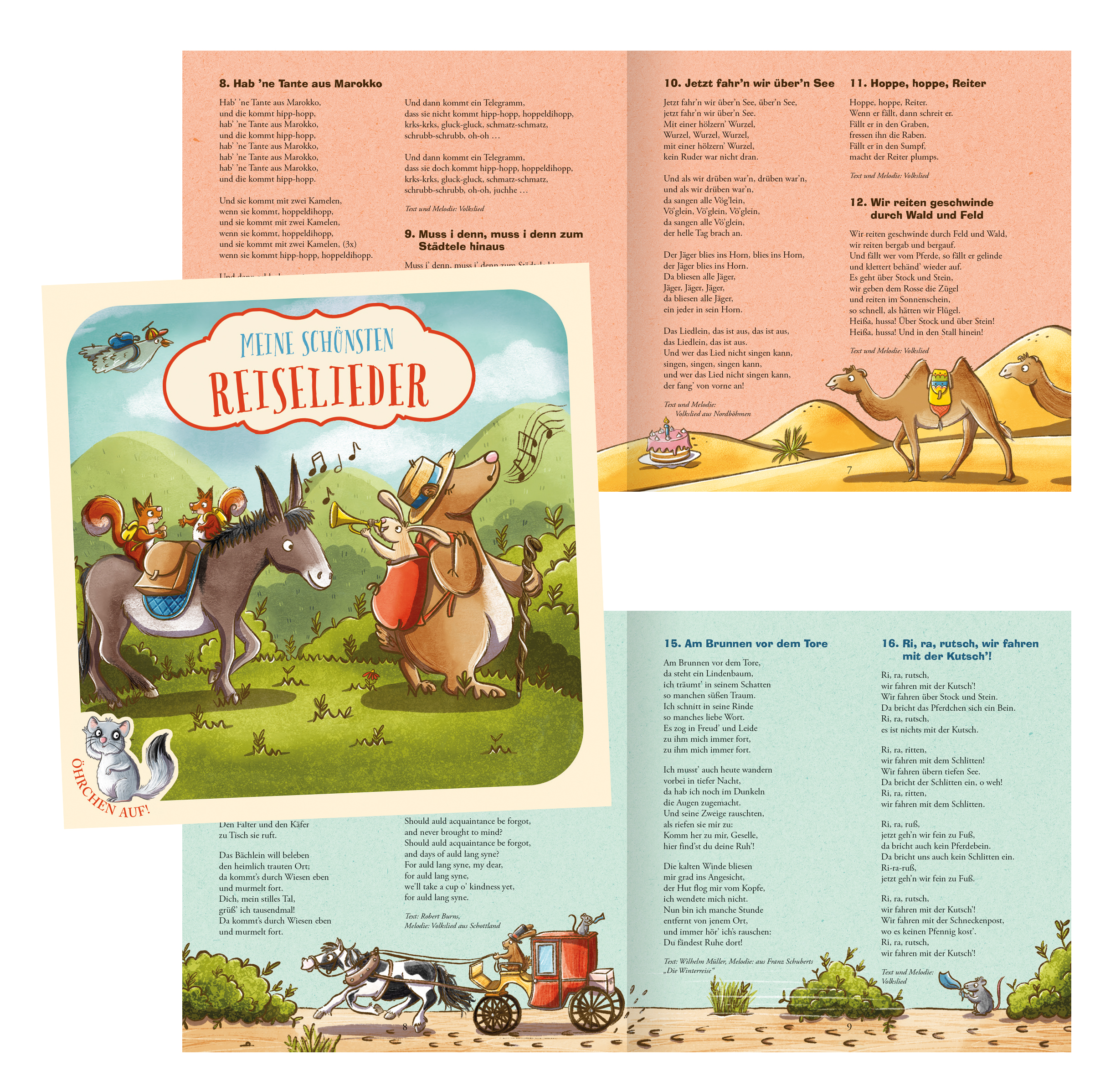 Diese 21 beliebten Reiselieder haben Fernwehgarantie und sind nicht nur der optimale Begleiter für einen kurzen Ausflug oder eine große Reise: Sie wecken die Lust, die weite Welt zu entdecken, und lassen mit ihren fröhlichen, modern umgesetzten Melodien auch den Urlaub auf Balkonien zu einem fröhlichen Abenteuer mit guter Laune und werden. 21 bekannte Kinderlieder zum Mitsingen und Tanzen inklusive Liedtexte. Schön ist die Welt - Kommt ein Vogel geflogen - Hänschen klein - Das Wandern ist des Müllers Lust - Ich armes welsches Teufli - Taler, Taler, du musst wandern - Auf de schwäbsche Eisebahne - Hab 'ne Tante aus Marokko - Muss i denn, muss i denn zum Städtele hinaus - Jetzt fahr'n wir über'n See - Hoppe, hoppe, Reiter - Wir reiten geschwinde durch Wald und Feld - Im schönsten Wiesengrunde - Auld lang Syne - Am Brunnen vor dem Tore - Ri, ra, rutsch, wir fahren mit der Kutsch'! - Alle, die mit uns auf Kaperfahrt fahren - Eine Seefahrt, die ist lustig - My Bonnie is over the Ocean - Nun ade, du mein lieb' Heimatland - Tuff, tuff, tuff, die Eisenbahn
