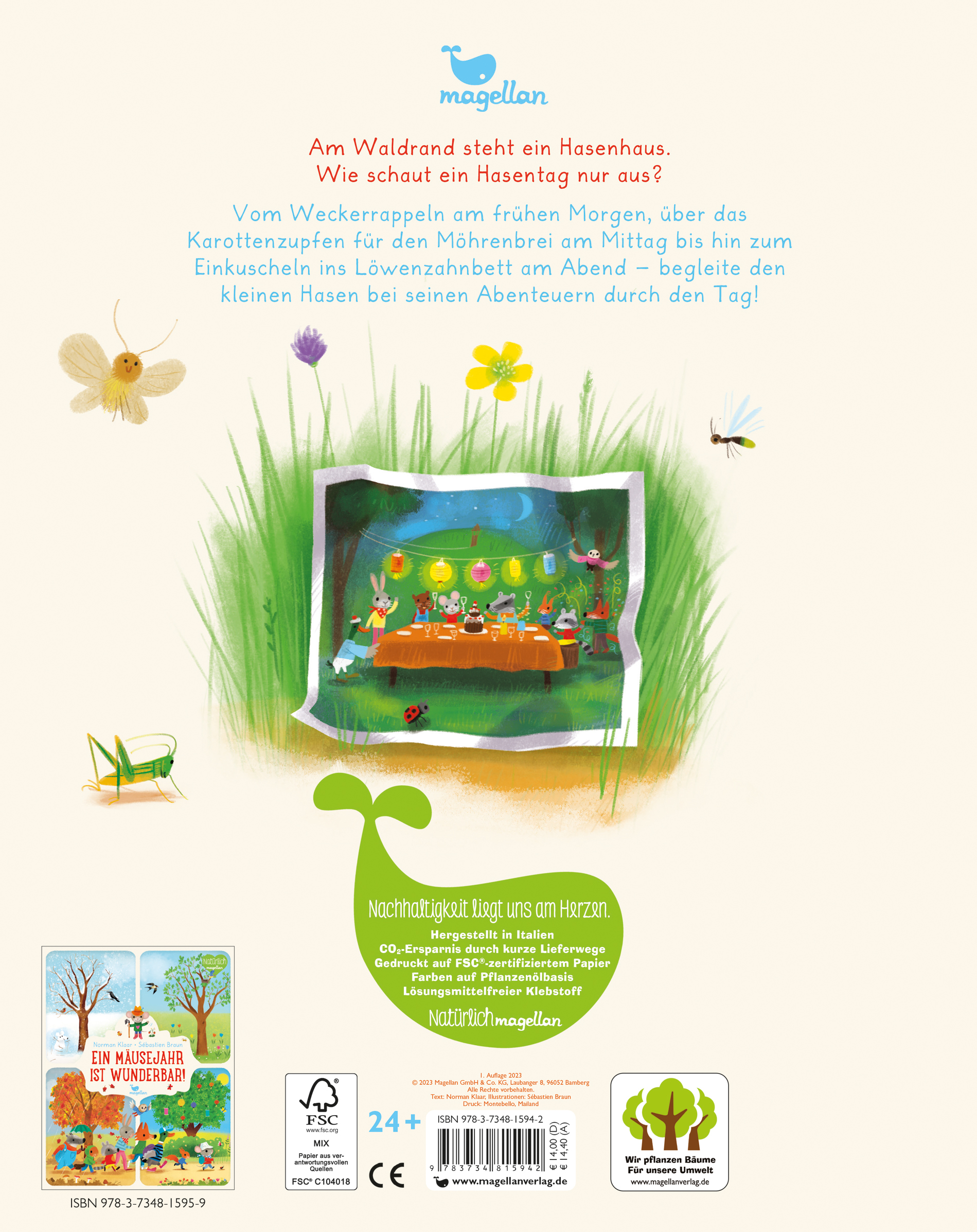 | Schlagworte | Abend • Abend, Abendessen • Abendessen • Biber • Dachs • Eichhörnchen • Ente • erstes Lernen • Eule • Feste • Freunde • Freunde, Freundschaft • Freundschaft • Frühstück • Frühstücken • Frühstück, Frühstücken • Fuchs • Großformat • Großmutter • Maus • Mittag • Mittagessen • Mittag, Mittagessen • Oma • Oma, Großmutter • Pappbilderbuch ab 2 Jahren • Reime • Schlafen • Schlafengehen • Schlafen, Schlafengehen • Stunden • Tag • Tagesablauf • Tag, Tagesablauf, Stunden • Uhr lernen • Uhr, Uhrzeit • Uhrzeit lernen • Waschbär |