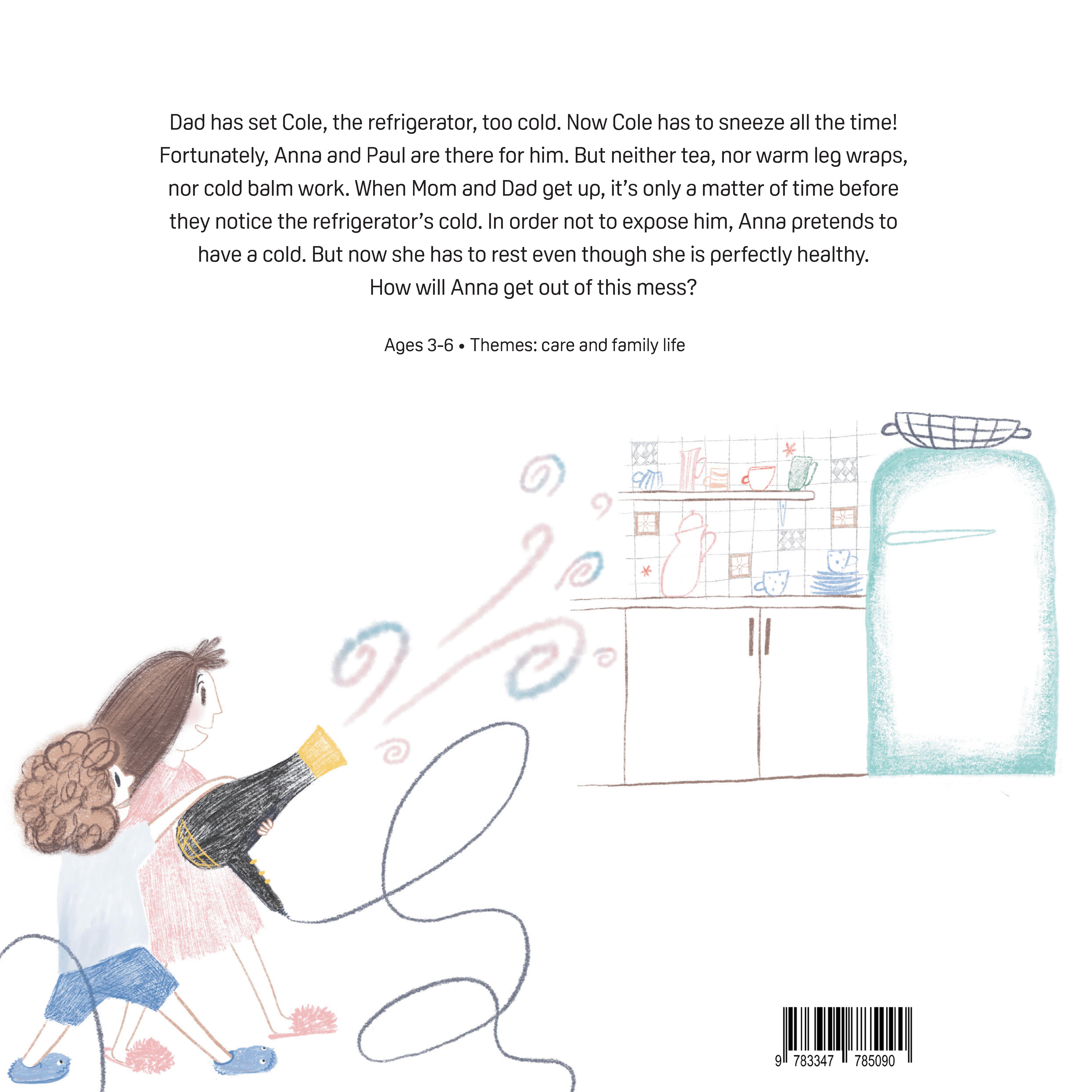 Dad has set Cole, the refrigerator, too cold. Now Cole has to sneeze all the time! Fortunately, Anna and Paul are there for him. But neither tea nor warm leg wraps,nor cold balm work. When Mom and Dad get up, it's only a matter of time before they notice the refrigerator's cold. In order not to expose him, Anna pretends tohave a cold. But now she has to rest even though she is perfectly healthy. How will Anna get out of this mess?