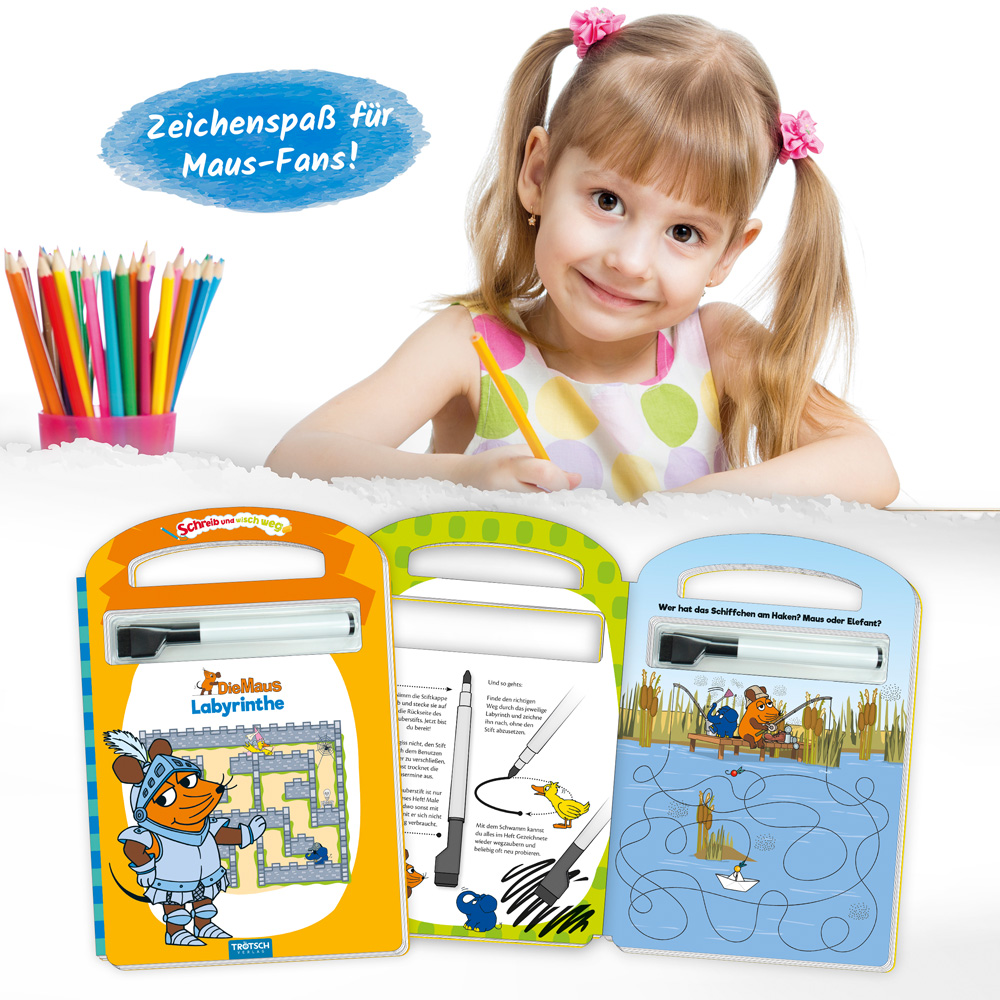 Trötsch Die Maus Schreib und wisch weg Pappenbuch Labyrinthe
