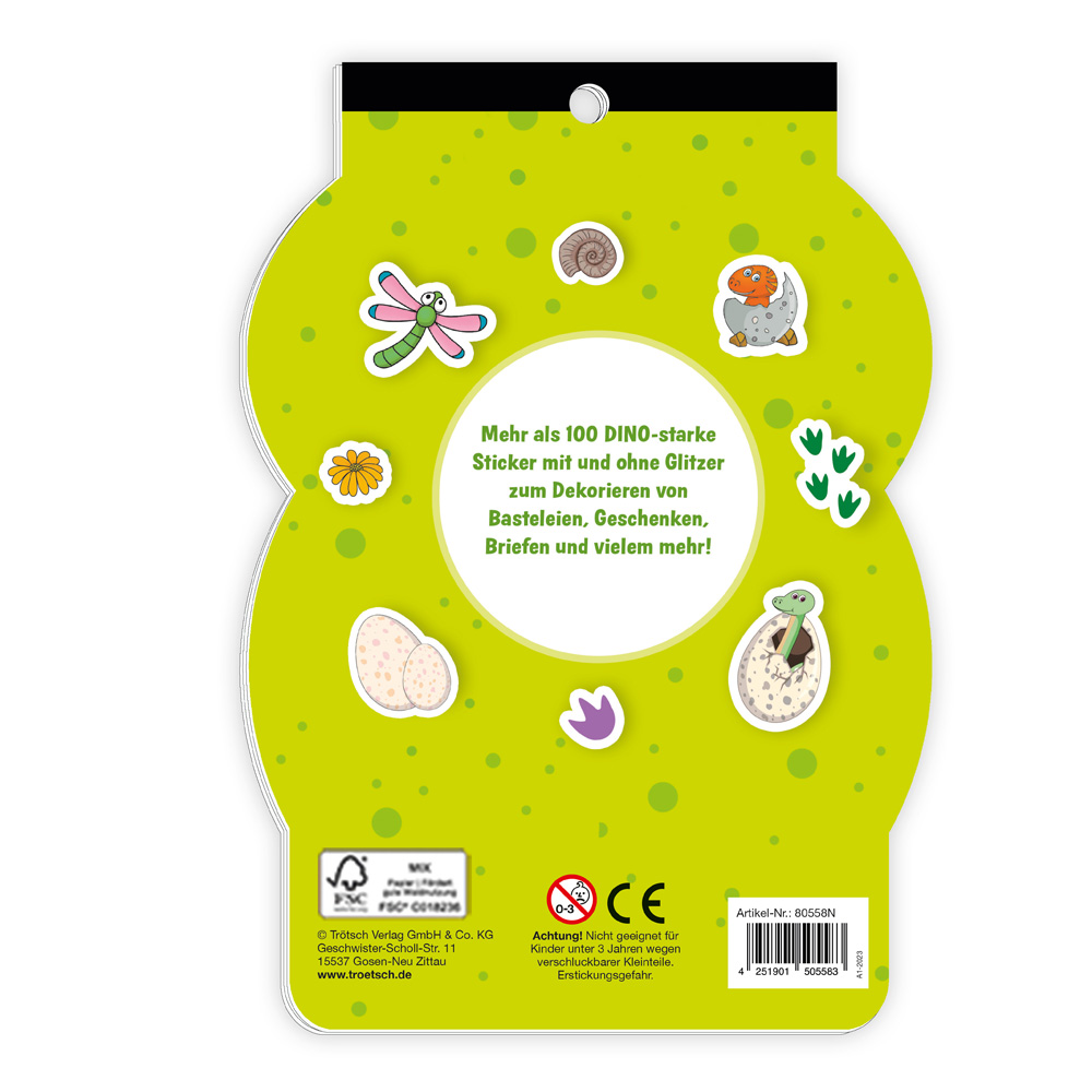 Dieser Block enthält mehr als 100 dinostarke Sticker, die mit coolen Designs und kunterbunten Effekten die Augen kleiner Dino-Fans zum Leuchten bringen. Sie eignen sich optimal zum Dekorieren von Basteleien, Geschenken oder auch dem Hausaufgabenheft und sorgen so für das extra bisschen Dino-Spaß zu Hause und unterwegs.