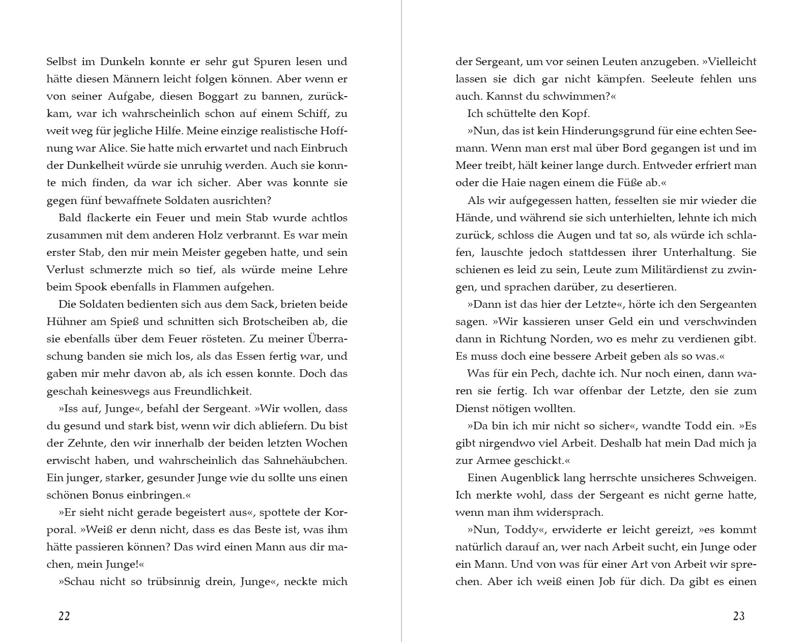1. Der Schilling des Königs2. Das Gesicht der Wahrheit3. Späte Antwort4. Die Mühle5. Ein hoher, gellender Schrei6. Wasserwissen7. Froschschenkel8. Die Frau des Fischers9. Hiebe und Schläge10. Der Brief des Spooks11. Der Hexenfinger12. Morwena13. Der Einsiedler von Cartmel14. Ein toter Mann15. Der tanzende Finger16. Blutspur17. Verfolgung18. Zwei Nachrichten19. Fährmannstochter20. Keine andere Wahl21. Fußfesseln22. Verkehrt herum23. Ein Hexenkrug24. Die Türme im Wald25. Grimalkin26. Das Unvorstellbare27. Eine schwierige Verhandlung28. Der Kampf im Moor29. Wohin ich gehöre30. Die schwarze Barke31. Wessen Blut?Tagebuch von Thomas J. Ward
