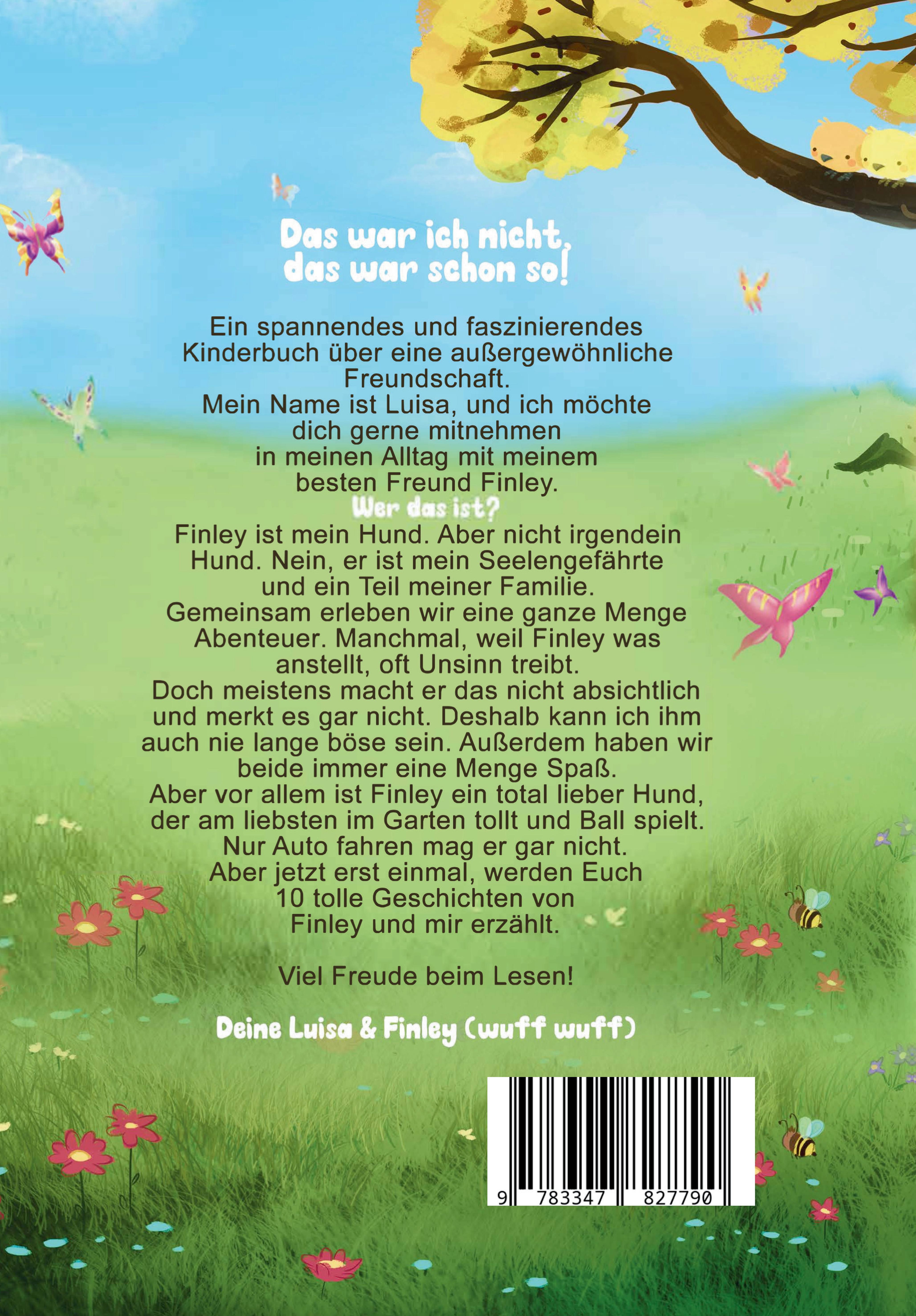 Entdecke die zauberhafte Welt von Luisa und Finley in "Das war ich nicht. Das war schon so!" - ein herzerwärmendes Kinderbuch, das die unzertrennliche Freundschaft zwischen einem Mädchen und ihrem Hund zum Leben erweckt. Dieses Buch ist ein Schatz für jede Kinderbibliothek und eignet sich hervorragend zum Vorlesen und Selberlesen.Warum dieses Buch ein Muss für junge Leser ist:Echte Freundschaftsgeschichten: Begleite Luisa und Finley durch 10 spannende und humorvolle Abenteuer, die zeigen, dass wahre Freundschaft jeden Unsinn übersteht. Diese Geschichten fördern nicht nur die Lesekompetenz, sondern auch das Verständnis für Loyalität und Zusammenhalt.Lebendige Illustrationen: Jede Seite dieses liebevoll gestalteten Buches ist mit Bildern gefüllt, die die Geschichten zum Leben erwecken und die Fantasie anregen. Kinder werden es lieben, die ausdrucksstarken Illustrationen zu betrachten, während sie den Abenteuern von Luisa und Finley folgen.Lebensnahe Charaktere: Luisa und Finley sind mehr als nur Figuren auf dem Papier; sie sind echte Freunde, die es wirklich gibt. Ihre Geschichten basieren auf wahren Begebenheiten, was dieses Buch zu einem einzigartigen Erlebnis macht.Förderung der Empathie: Durch Finleys Missgeschicke und Luisas verständnisvolle Reaktionen lernen Kinder wichtige Lektionen über Vergebung, Verantwortung und die Kraft der Freundschaft.Vielseitig und unterhaltsam: Ob zu Hause, im Klassenzimmer oder unterwegs - dieses Buch bietet endlosen Lesespaß und ist eine wunderbare Möglichkeit, die Liebe zum Lesen zu fördern."Das war ich nicht. Das war schon so!" ist nicht nur ein Buch, sondern ein Fenster in eine Welt voller Abenteuer, Lachen und bedingungsloser Freundschaft. Ideal für Kinder ab 4 Jahren, die spannende Geschichten lieben und gleichzeitig wertvolle Lebenslektionen lernen möchten.Mach dich bereit für ein Leseerlebnis, das du nicht so schnell vergessen wirst. Viel Spaß beim Entdecken, Lachen und Lernen mit Luisa und Finley!Hole dir jetzt dein Exemplar und werde Teil ihrer unvergesslichen Abenteuer!