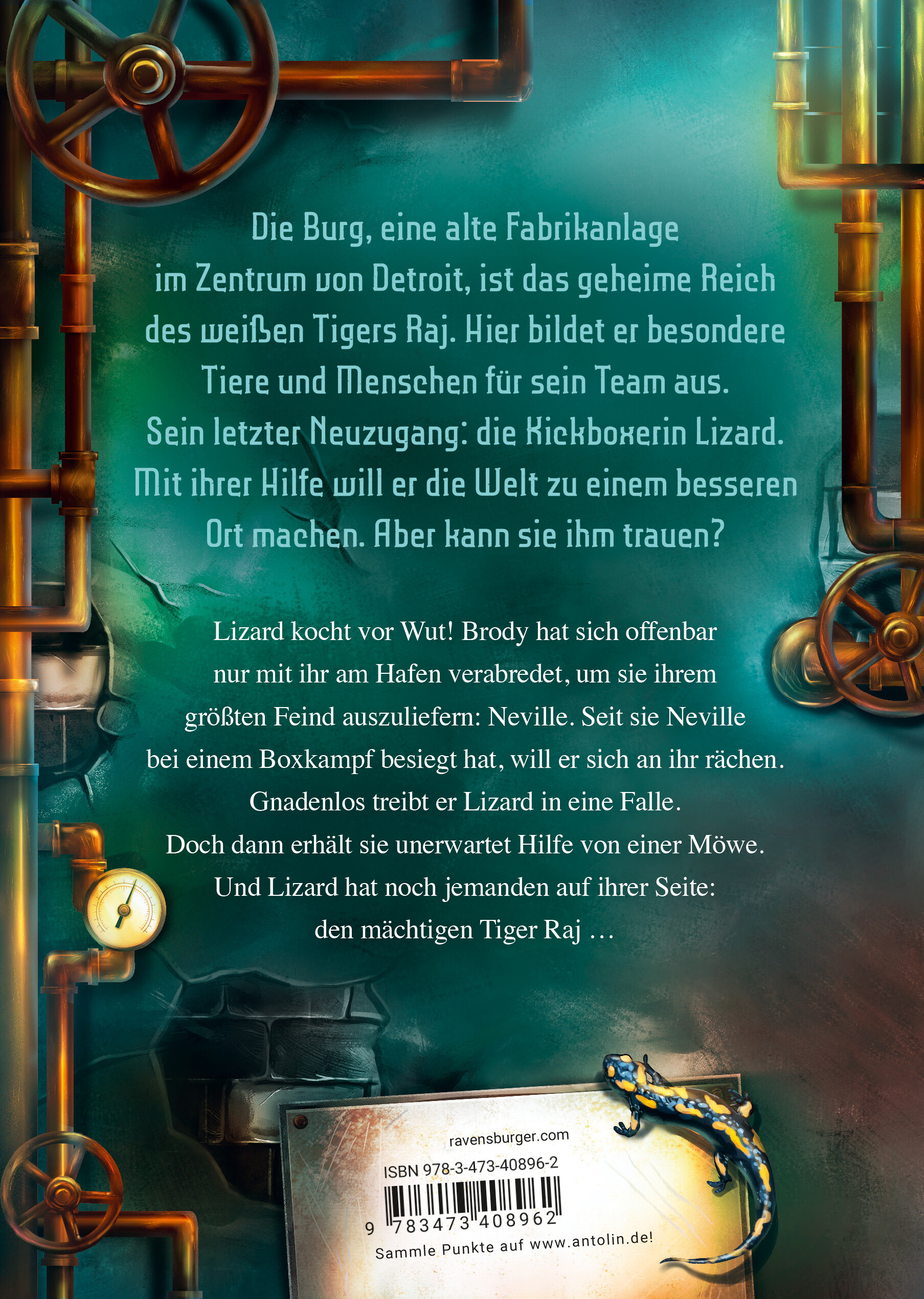Lizard kocht vor Wut! Broody hat sich offenbar nur mit ihr am Hafen verabredet, um sie ihrem größten Feind auszuliefern: Neville. Seit sie Neville bei einem Boxkampf besiegt hat, will er sich an ihr rächen. Gnadenlos treibt er Lizard in eine Falle. Doch dann erhält sie unerwartet Hilfe von einer Möwe. Und Lizard hat noch jemanden auf ihrer Seite: den mächtigen Tiger Raj ...