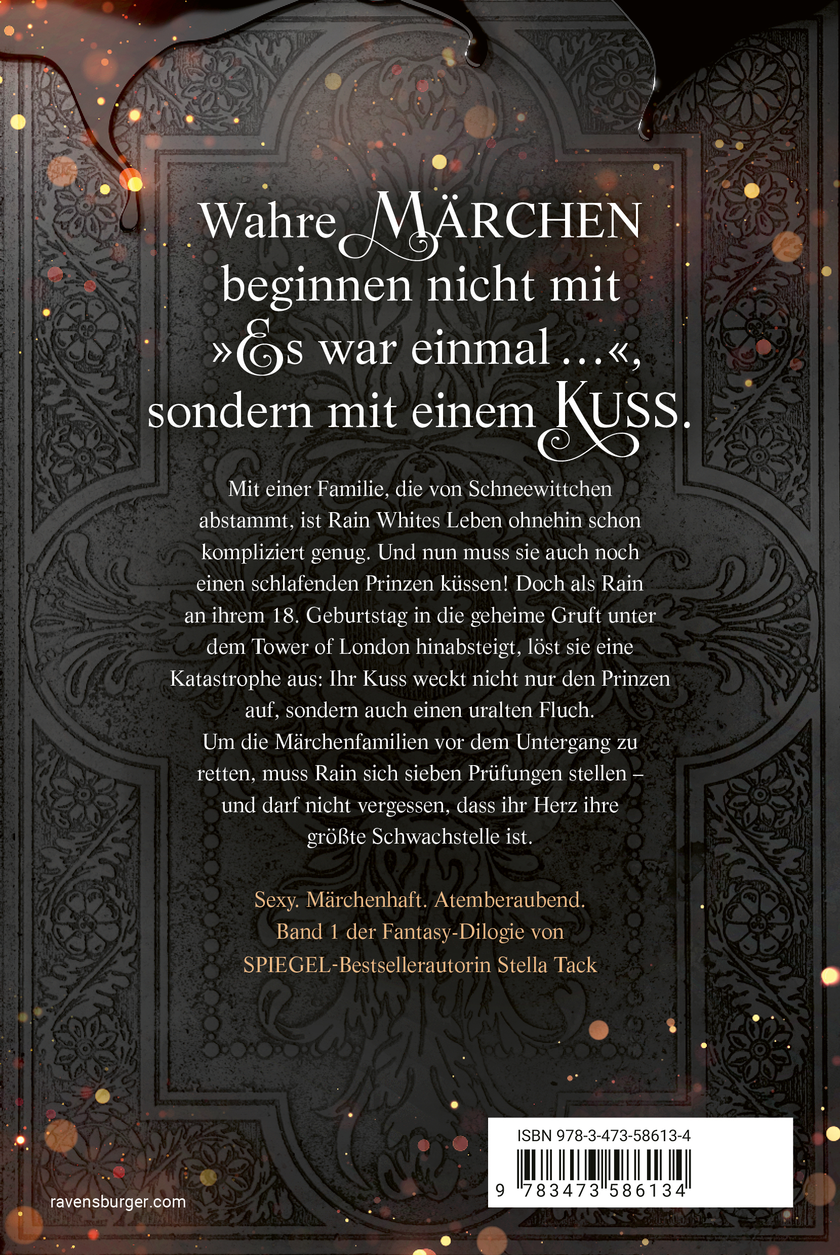 Mit einer Familie, die von Schneewittchen abstammt, ist Rain Whites Leben schon kompliziert genug. Nun muss sie auch noch einen schlafenden Prinzen küssen! Doch als Rain an ihrem 18. Geburtstag in die Gruft unter dem Tower of London hinabsteigt, löst sie eine Katastrophe aus: Ihr Kuss weckt nicht nur den Prinzen auf, sondern auch einen uralten Fluch. Um die Märchenfamilien zu retten, muss Rain sich sieben Prüfungen stellen - und darf nicht vergessen, dass ihr Herz ihre größte Schwachstelle ist.