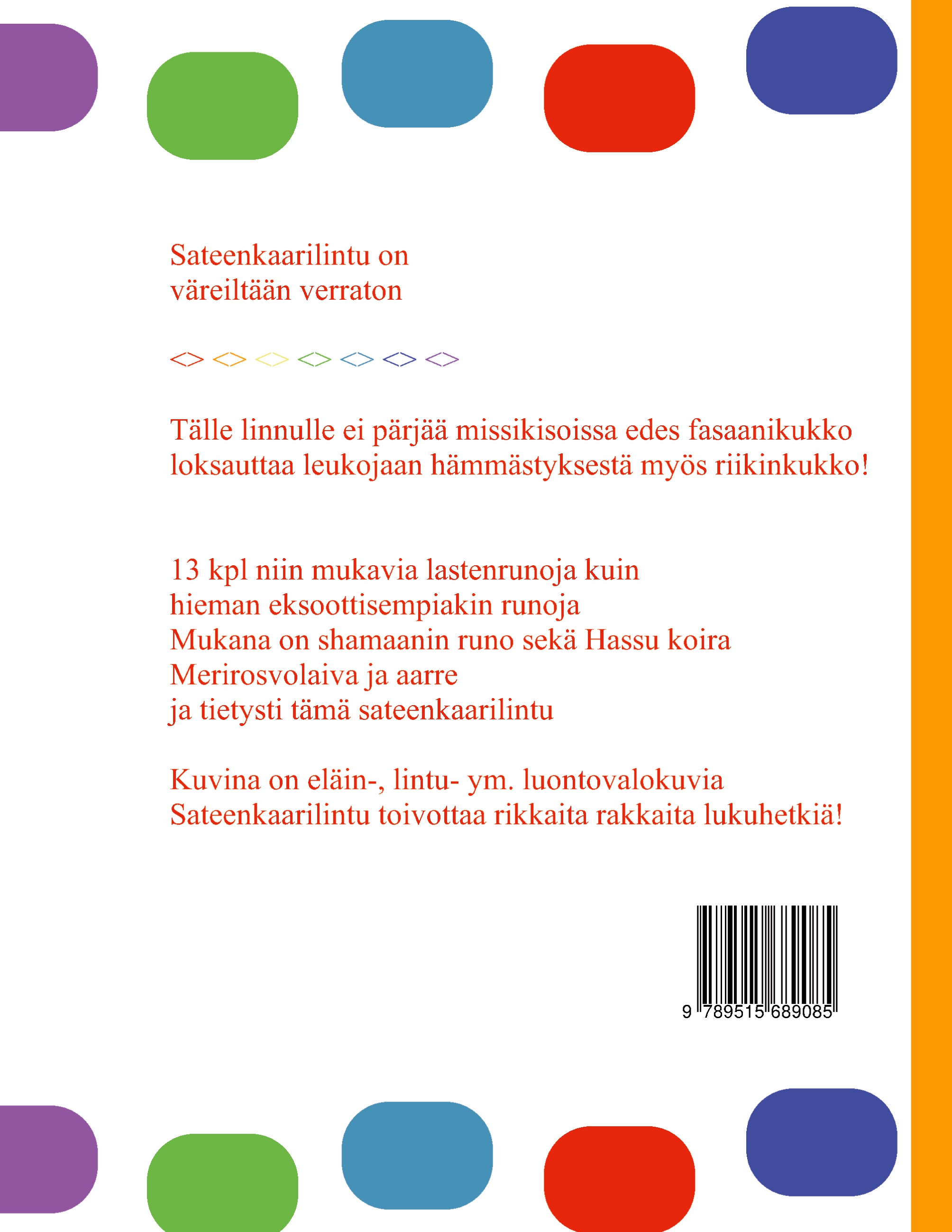 | Schlagworte | eläinrunot • lastenkirjallisuus • lastenrunot • runoja eläimistä • Runot • runot eläimet |
