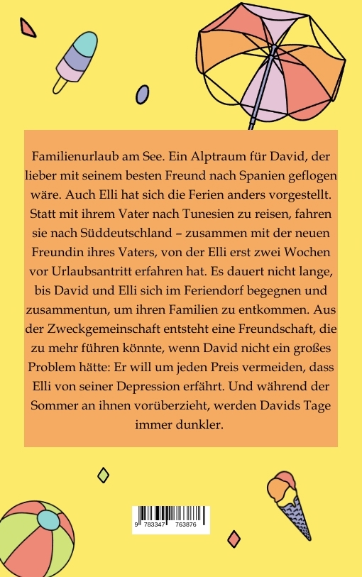 | Schlagworte | Coming of Age • Depression • Eis • Erste Liebe • Familie • Freundschaft • Gedanken • Geistige Gesundheit • Liebe • Probleme • Schwierigkeiten in der Familie • See • Sommer • Urlaub • Verliebtheit |