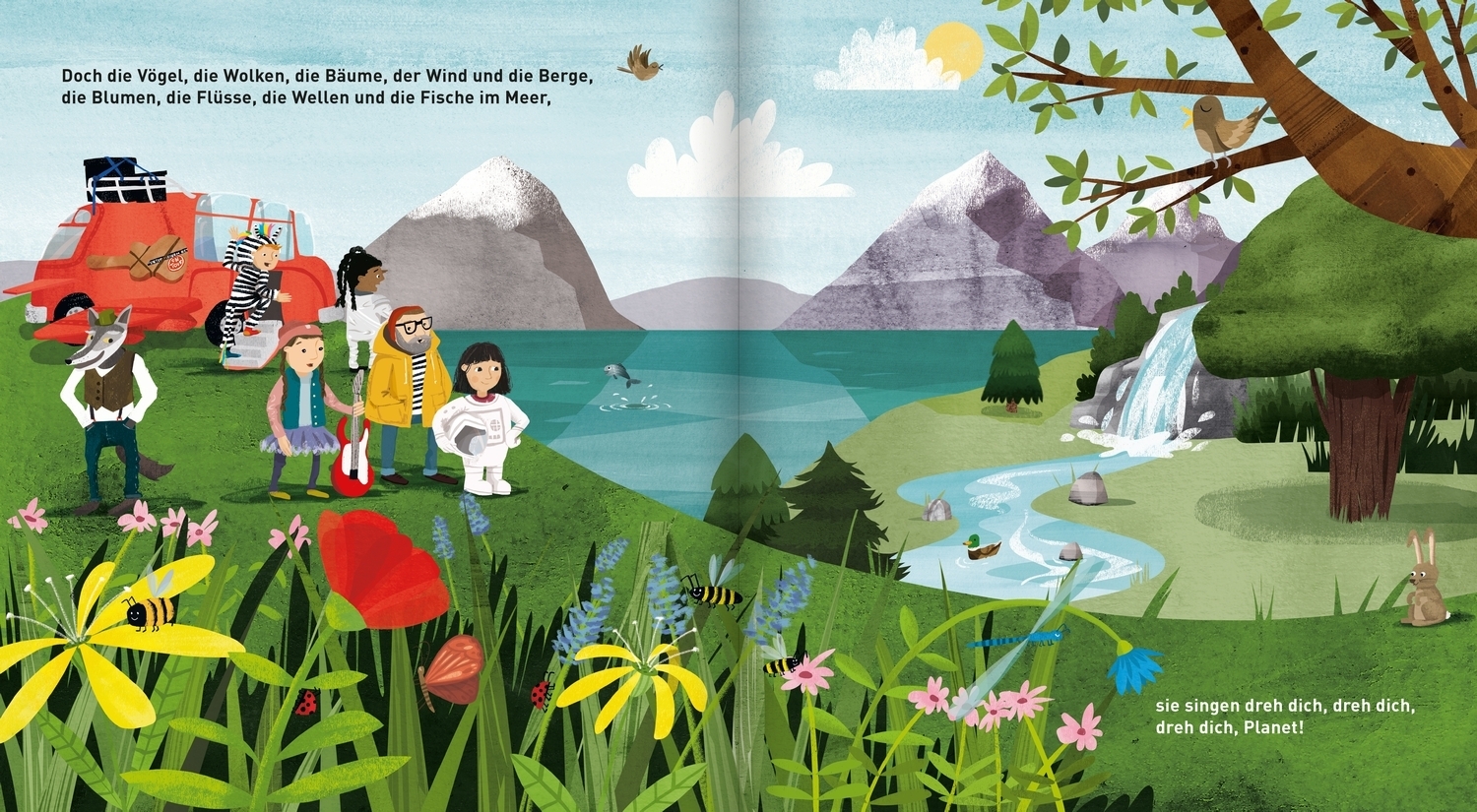 Das Buch Planet ist eine wunderbare Reise um die Erde, die Kindern nahe bringt, wie schön und wertvoll sie ist. Große atmosphärische Illustrationen, mit ein paar Figuren, die ihr vielleicht von den UMB-Alben kennt, machen es zu einem Liebeslied an die Erde. Es lädt zum Mitsingen, Träumen und miteinander Reden ein.