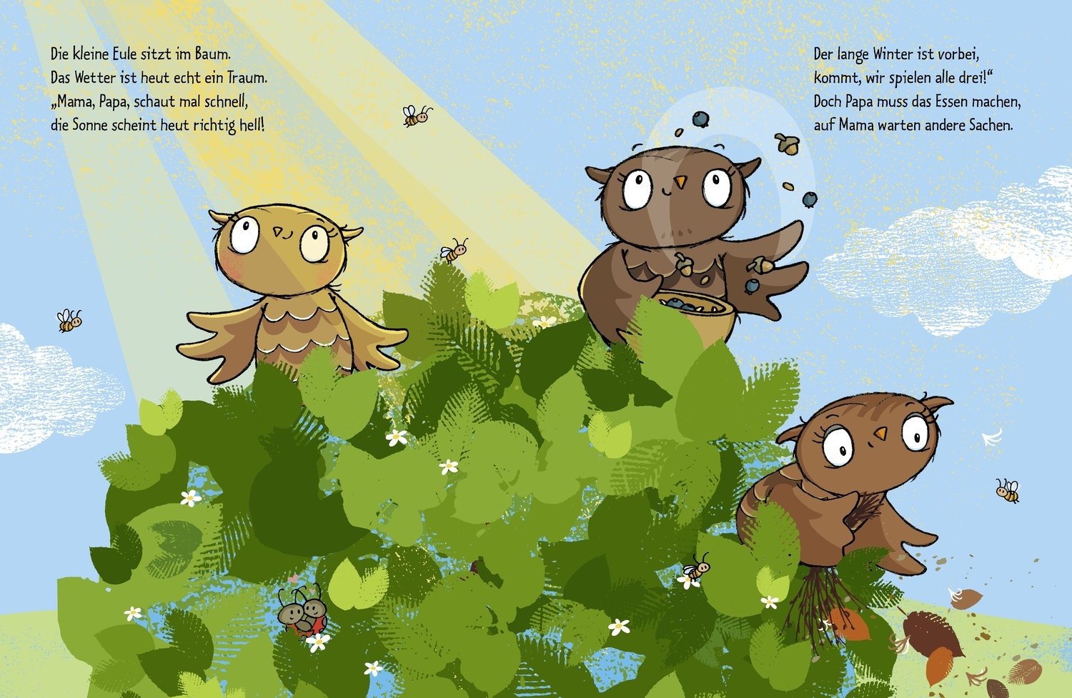 Die erste Geschichte mit der kleinen Eule, "Die Eule mit der Beule", erschien als Pappbilderbuch. Mittlerweile sind einige Geschichten mit dem gefiederten kleinen Waldbewohner auch als großes Bilderbuch für Kinder ab drei Jahren zu haben.