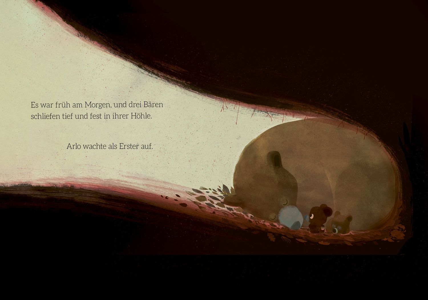 Schau dir die kuschelige Höhle an, in der der kleine Bär Arlo mit seiner Schwester Eva und seiner Mutter lebt: hach, wie warm und gemütlich. Da fühlt Arlo sich wohl und sicher. Doch der Winter ist fast vorbei, und es wird Zeit, ins Tal zu ziehen. Dabei würde Arlo die Dinge viel lieber so lassen, wie sie waren. Die neugierige Eva dagegen freut sich und läuft aufgeregt voran. Auf dem Weg muss die kleine Bärenfamilie einen verschneiten Berg überqueren. "Bleibt in meiner Nähe", ruft Mama-Bär, denn plötzlich kommt ein heulender Schneesturm auf. Arlo merkt sofort, dass seine Schwester zu weit vorgelaufen ist, und er hört sie rufen! Arlo hat zwar Angst, aber er weiß genau, was er tun muss und läuft mutig los.