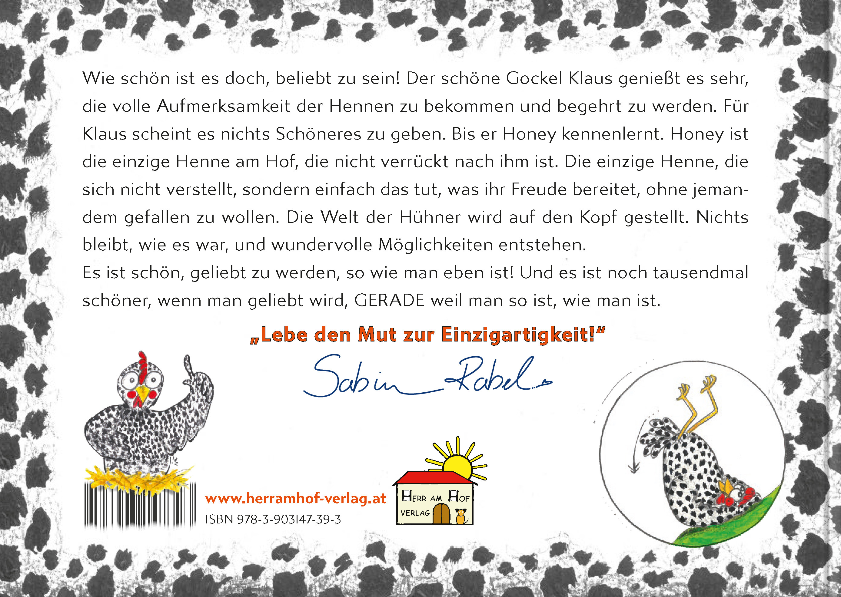 Wie schön ist es doch, beliebt zu sein! Der schöne Gockel Klaus genießt es sehr, die volle Aufmerksamkeit der Hennen zu bekommen und begehrt zu werden. Für Klaus scheint es nichts Schöneres zu geben. Bis er Honey kennenlernt. Honey ist die einzige Henne am Hof, die nicht verrückt nach ihm ist. Die einzige Henne, die sich nicht verstellt, sondern einfach das tut, was ihr Freude bereitet, ohne jemandem gefallen zu wollen. Die Welt der Hühner wird auf den Kopf gestellt. Nichts bleibt, wie es war, und wundervolle Möglichkeiten entstehen.Es ist schön, geliebt zu werden, so wie man eben ist! Und es ist noch tausendmal schöner, wenn man geliebt wird, GERADE weil man so ist, wie man ist.
