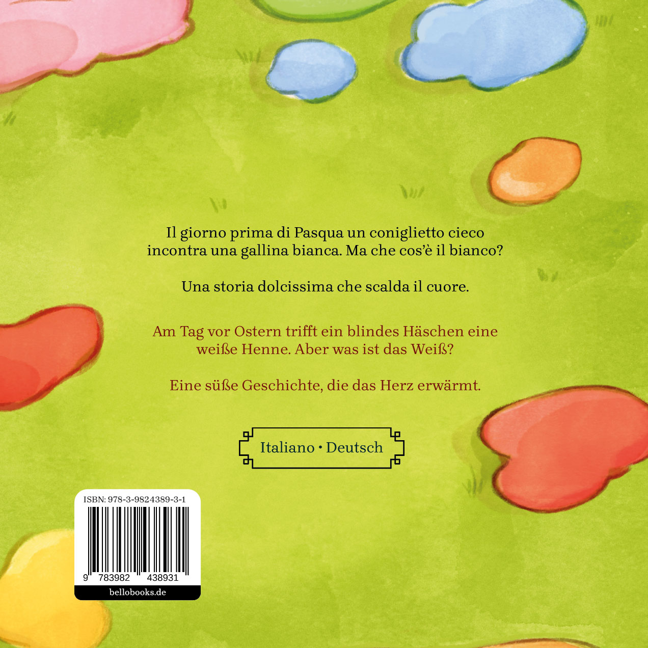 | Schlagworte | Farben • Kinderbuch • Kinderbuch Italienisch-Deutsch • Kinderbuch Ostern • Mehrsprachigkeit • Ostern • zweisprachiges Kinderbuch |