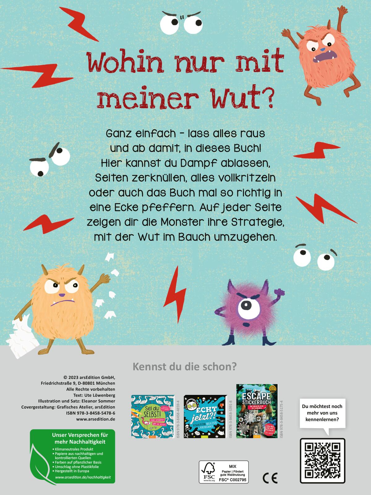 Ganz einfach - lass alles raus und ab damit, in dieses Buch! Hier kannst du Dampf ablassen, Seiten zerknüllen, alles vollkritzeln oder auch das Buch mal so richtig in eine Ecke pfeffern. Auf jeder Seite zeigen dir die Monster ihre Strategien, Tipps und Tricks, mit der Wut im Bauch umzugehen.