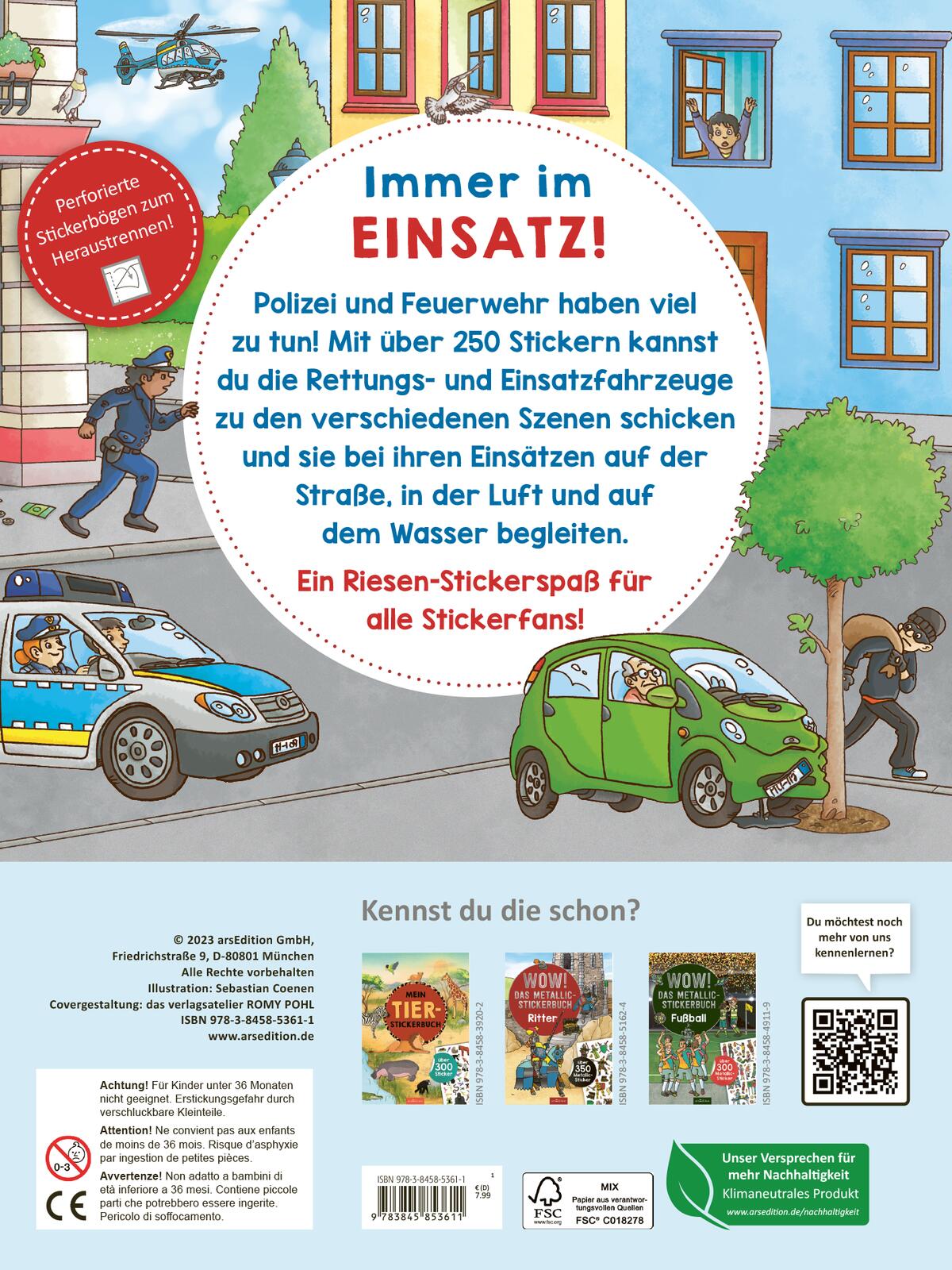 Polizei und Feuerwehr haben viel zu tun! Mit über 250 Stickern kannst du die Rettungs- und Einsatzfahrzeuge zu den verschiedenen Szenen schicken und sie auf ihren Einsätzen auf der Straße, in der Luft und auf dem Wasser begleiten.