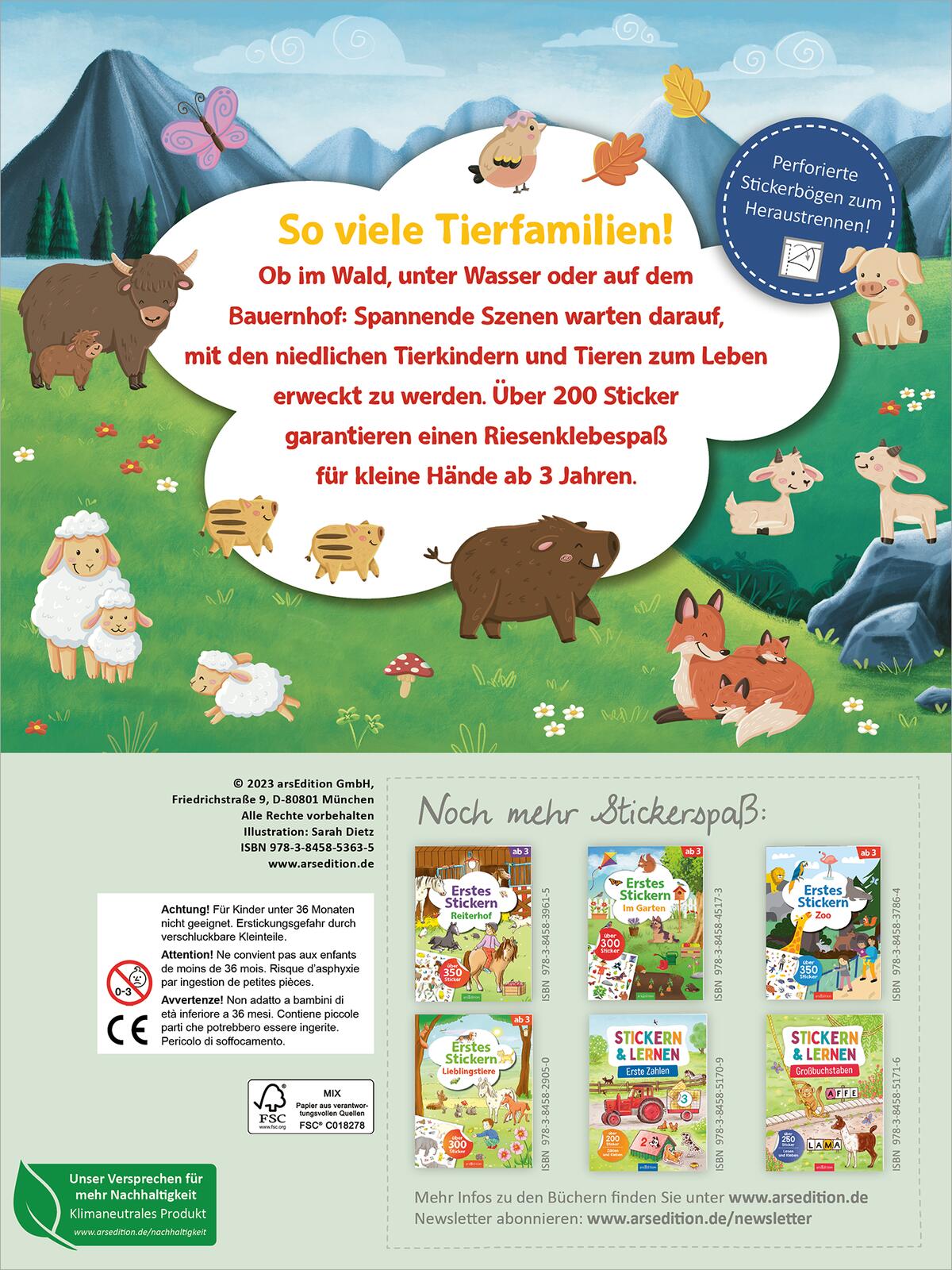 Das großformatige Stickeralbum bietet jede Menge Raum, der Fantasie freien Lauf zu lassen und eigene Szenen rund um die Tierwelt zu erschaffen. Ein schönes Heft, mit dem sich schon 3-Jährige selbstständig beschäftigen können - ob unterwegs oder zu Hause.