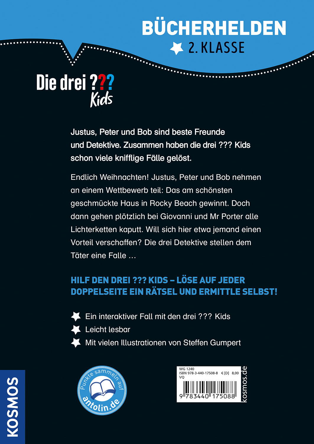 Die drei ??? Kids sind schon ganz aufgeregt: Bald ist endlich Weihnachten! Begeistert nehmen die Freunde an einem Preisausschreiben teil. Den Hauptgewinn erhält, wer sein Haus am schönsten schmückt. Doch mit Onkel Titus' Lichterketten stimmt etwas nicht. Sie sind alle kaputt! Die Häuser in Rocky Beach bleiben dunkel. Justus, Peter und Bob suchen die Übeltäter. Was ist der Grund für die Sabotage? Wollen andere den Preis für sich beanspruchen? Ein aufregender Krimi mit vielen vierfarbigen Illustrationen und Rätseln. Das interaktive Bücherhelden-Abenteuer ist für Detektive ab der zweiten Klasse die ideale Beschäftigung in der Weihnachtszeit.