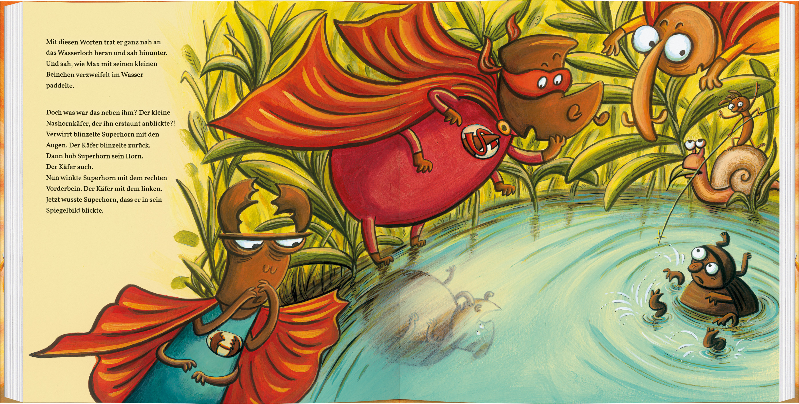 | Schlagworte | Bilderbuch • Elefant • Ertrinken • Held • Hirsch • Hirschkäfer • Humor • Käfer • Mut • Nashorn • Nashornkäfer • Rettung • Rüsselkäfer • Superhelden • Vorbilder • Vorlesebuch |