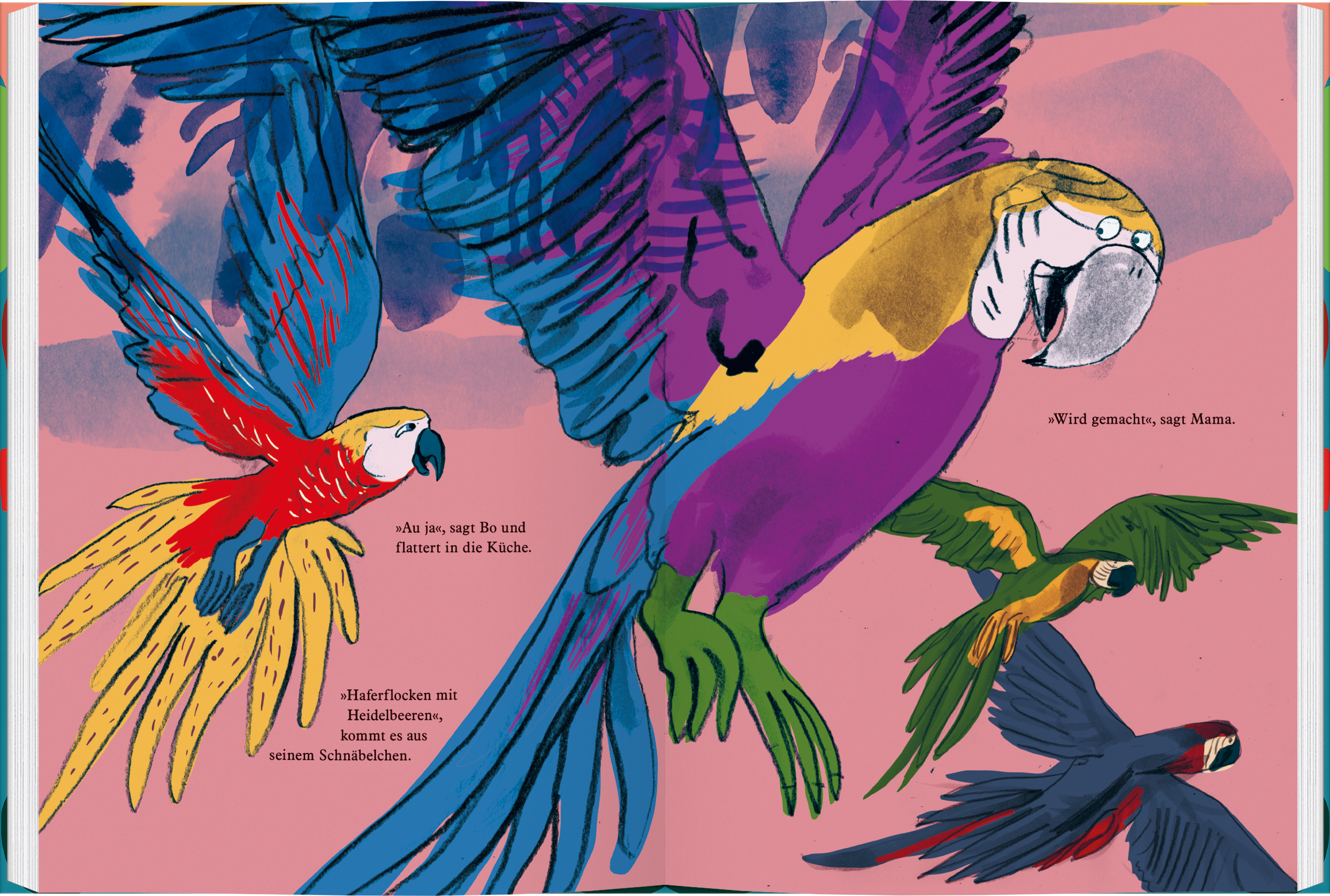Es ist schon spät - aber Bo will noch nicht schlafen. Lieber turnt er auf dem Sofa und macht Quatsch. Er stellt sich vor, er wäre ein Papagei, die schlafen nämlich auf einem Bein! Oder ein Erdmännchen, die kuscheln sich eng aneinander. Aber auch Tiere müssen zu Abend essen, sich waschen und Zähne putzen ... Und vor Löwen zu flüchten oder als Fledermaus auf dem Kopf zu stehen, kann ziemlich müde machen.Eine Gutenachtgeschichte für nimmermüde Kinder und ihre Eltern, mit Einschlafgarantie!