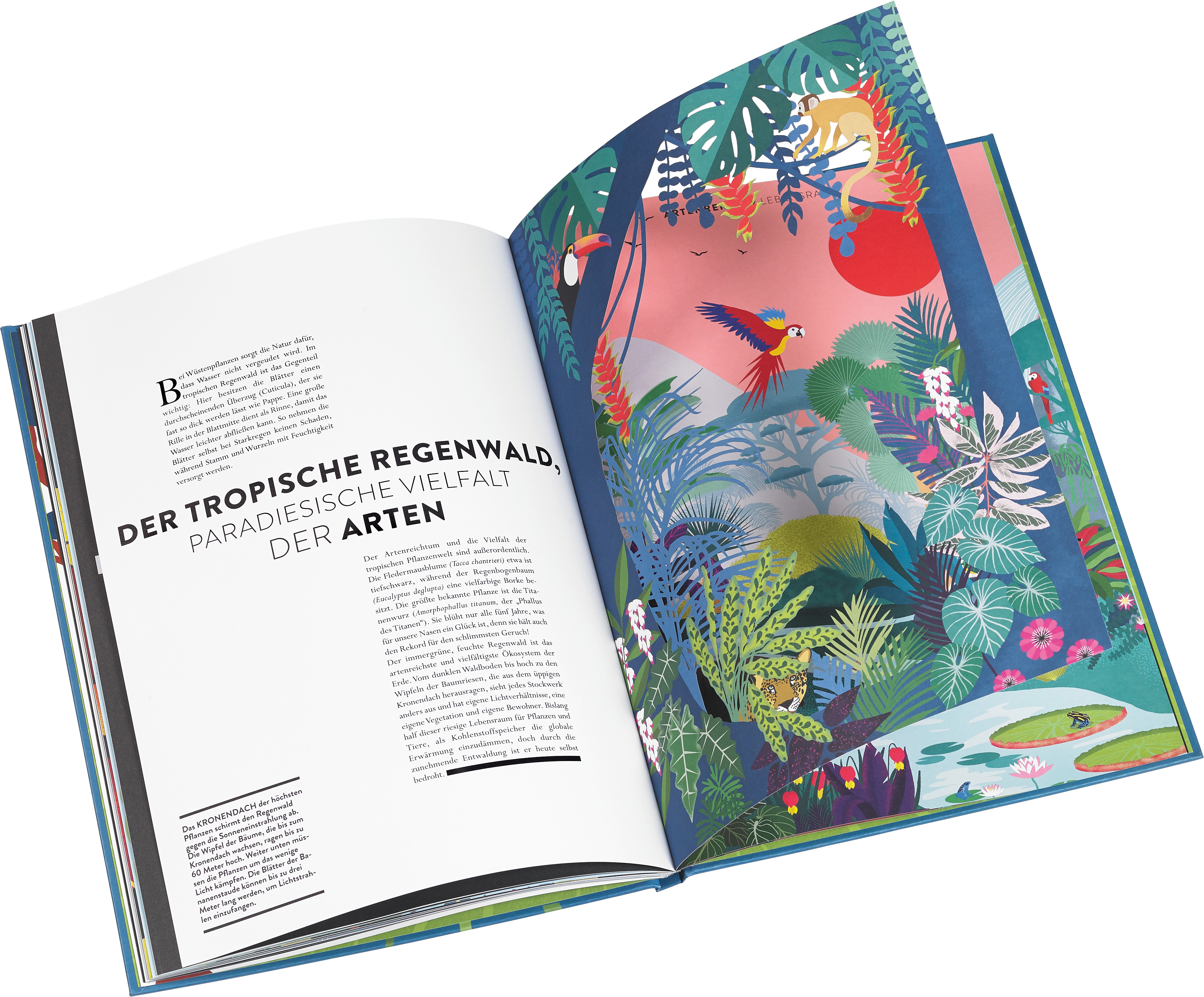 Pflanzen sind wahre Wunder der Natur. Das bringt dieses Buch mit seiner plakativen Grafik, den vielen Klappen und den ästhetischen Lasercut-Scherenschnitten auf faszinierende Weise zum Ausdruck. Ob als geniale Kraftwerke, die Sauerstoff produzieren können, ob als Überlebenskünstler, die eisiger Kälte und sengender Hitze trotzen, ob als winziges Phytoplankton oder als riesiger Baum: Hier wird uns die Wunderwelt der Pflanzen von der Wurzel bis zum Blatt nahezu greifbar vor Augen geführt.· Dieses großformatige, aufwendig gestaltete Buchkunstwerk zeigt die ganze Fülle unserer Pflanzenwelt in eindrucksvollen Illustrationen und mit vielen Klappen und Scherenschnitten.