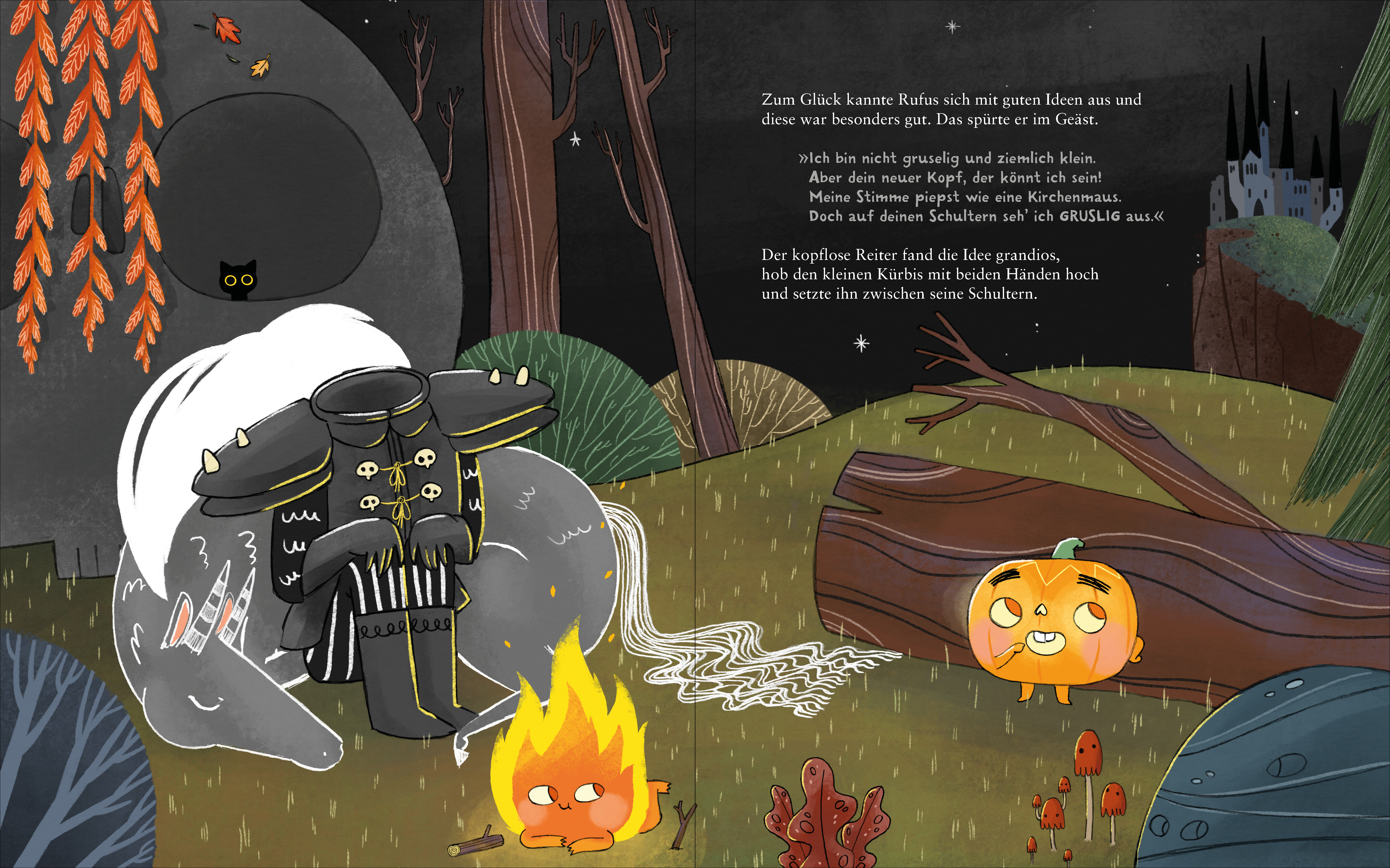 Rufus hat ein Problem: Halloween naht und der kleine Kürbis sieht einfach - oh Schreck - SÜSS aus! Er setzt alles daran, schrecklich gruselig zu werden. Mindestens so gruselig wie der kopflose Reiter! Doch alle seine Pläne klappen nicht. Kein Wunder, dass er langsam richtig sauer wird. Doch als er schon aufgeben will, läuft ihm der kopflose Reiter selbst über den Weg und die beiden beschließen, dass sie als Grusel-Duo die Welt gehörig in Schrecken versetzen können. Doppelt gruselt schließlich besser.