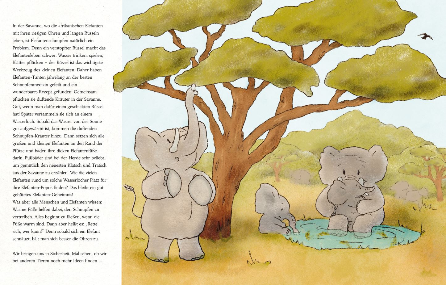 Und so reisen wir mit den beiden Freunden vergnügt durch die Tierwelt, um die verschiedensten Hausmittel kennenzulernen. Denn ob große oder kleine Nase, es gibt für alle Schnupfenkinder ein wohltuendes Rezept.