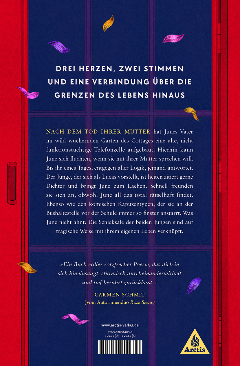 Nach dem Tod ihrer Mutter hat Junes Vater im wild wuchernden Garten des Cottages eine alte, nicht funktionstüchtige Telefonzelle aufgebaut. Hierhin kann June sich flüchten, wenn sie mit ihrer Mutter sprechen will. Bis ihr eines Tages, entgegen aller Logik, jemand antwortet. Der Junge, der sich als Lucas vorstellt, ist heiter, zitiert gerne Dichter und bringt June zum Lachen. Schnell freunden sie sich an, obwohl June all das total rätselhaft findet. Ebenso wie den komischen Kapuzentypen, der sie an der Bushaltestelle vor der Schule immer so finster anstarrt. Was June nicht ahnt: Die Schicksale der beiden Jungen sind auf tragische Weise mit ihrem eigenen Leben verknüpft.