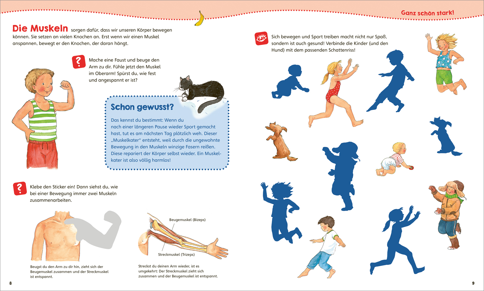 Wohin wandern Speisen nach dem Essen? Wie funktionieren unsere Sinne? Was leistet unser Herz und wie heilt ein Knochenbruch? Unser Körper ist ein großes Wunderwerk! Mit bunten Stickern, unterhaltsamen und abwechslungsreichen Rätseln und Malbildern erklärt das Mitmachheft spielerisch und spaßig den Aufbau des Körpers. Welche Aufgaben haben die verschiedenen Organe und wie Arbeiten die Muskeln? Und natürlich gibt es auch wieder eine Erstlesegeschichte mit Icons zum Mitlesen. Viel Spaß und Unterhaltung für Kinder ab 4 Jahren.