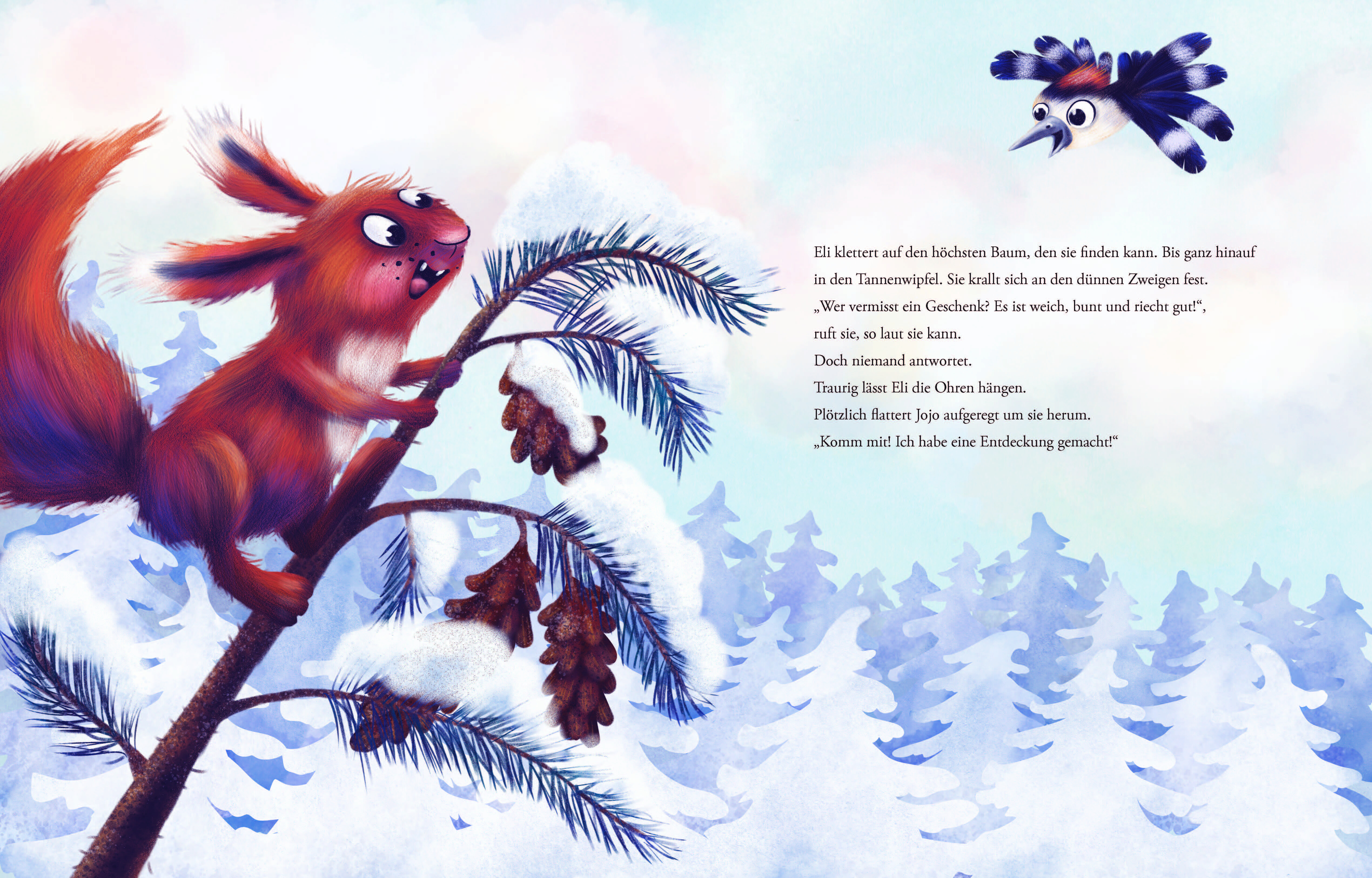 Eli würde so gerne den Schnee sehen! Aber das kleine Eichhörnchen soll Winterruhe halten. Wie gut, dass Eli einen geheimen Plan geschmiedet hat: Ihr Freund Jojo wird sie wecken, wenn das Christkind kommt. Als dann mitten im Wald ein Geschenk auftaucht, ist Eli überzeugt - das Christkind braucht jetzt ihre Hilfe.