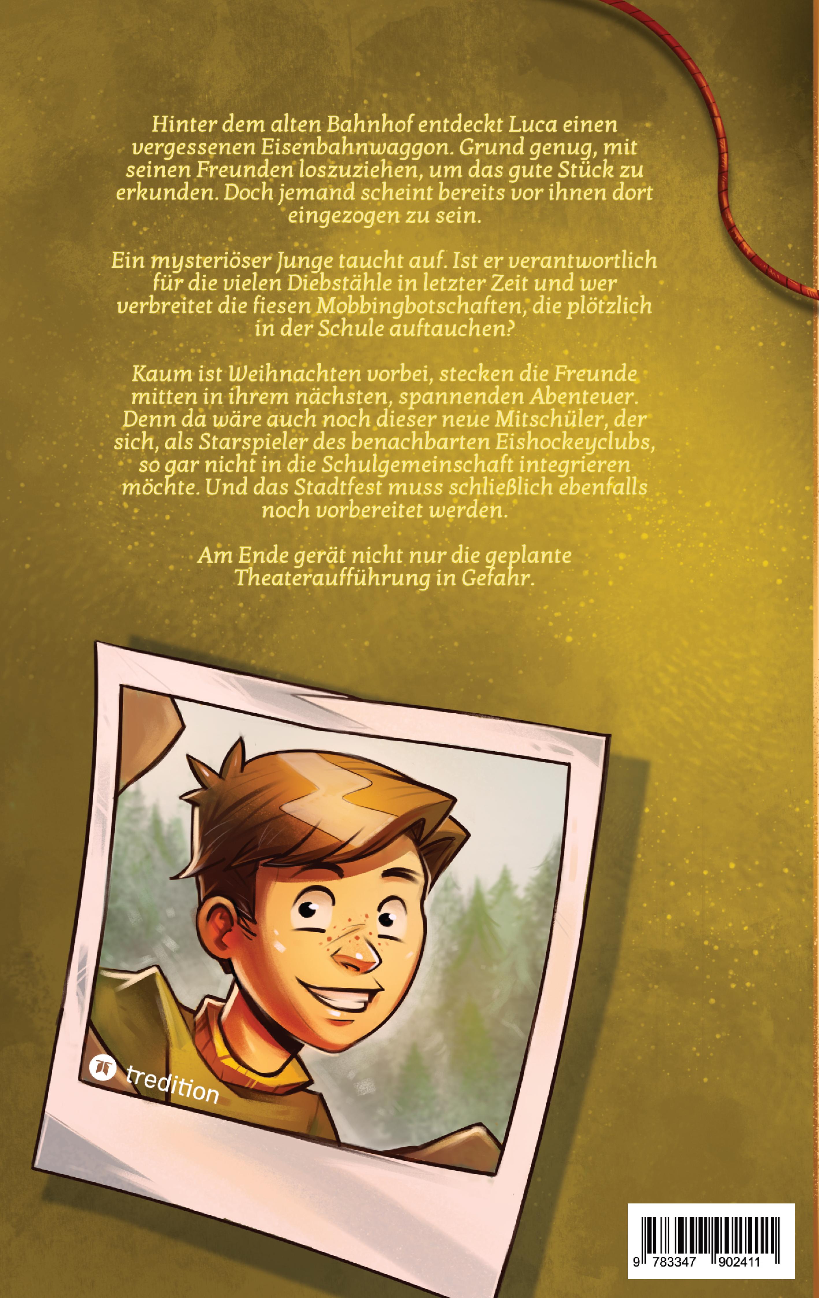 | Schlagworte | Abenteuer • Bande • Bücher für Jungs • Bücher für Teenager • Detektivgeschichten • Freundschaft • Jugendliteratur • Jugendücher • Kinderbücher • Krimi • Luca • spannende Bücher |