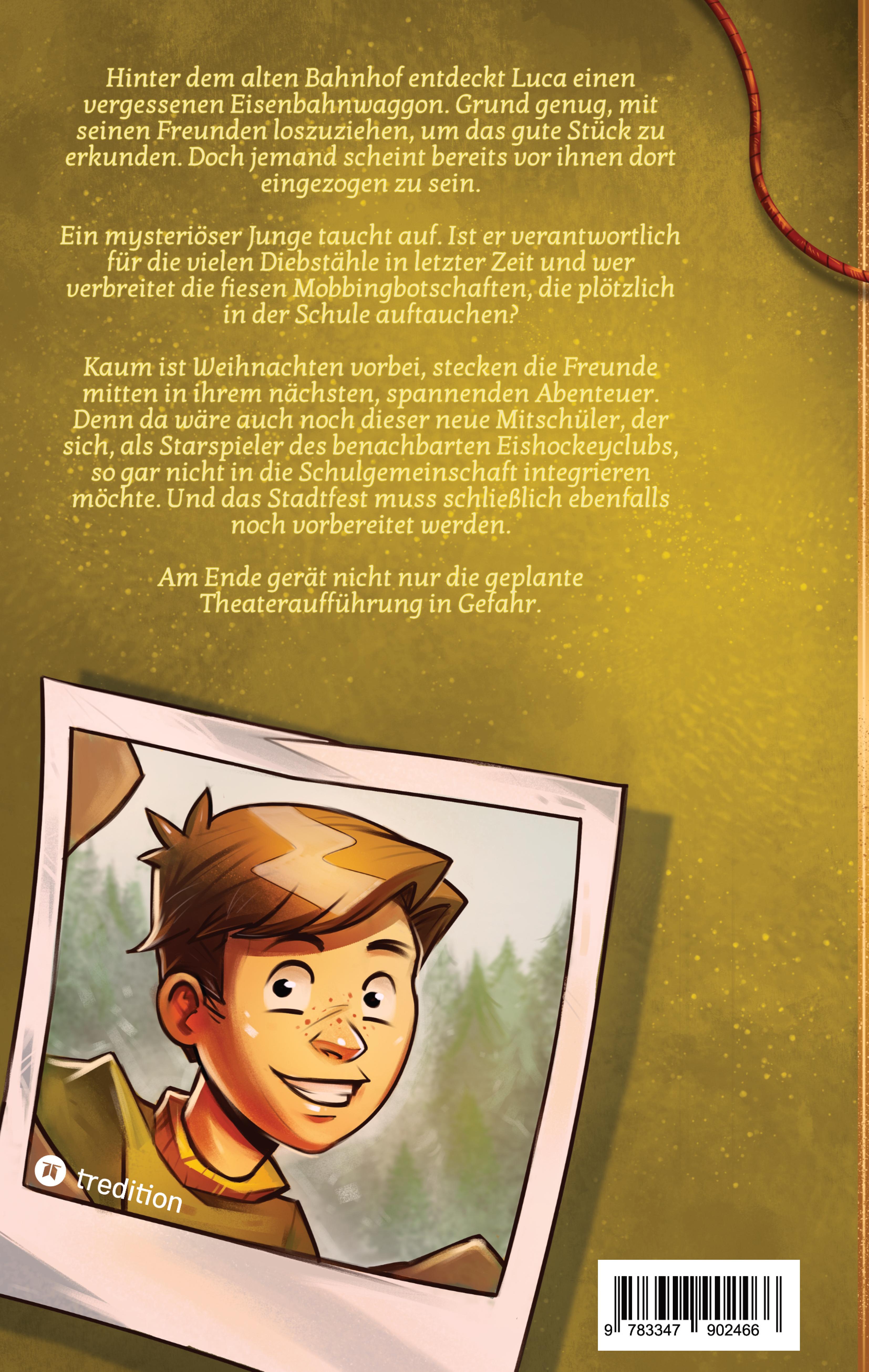 | Schlagworte | Abenteuer • Bande • Bücher für Jungs • Bücher für Teenager • Detektivgeschichten • Freundschaft • Jugendliteratur • Jugendücher • Kinderbücher • Krimi • Luca • spannende Bücher |
