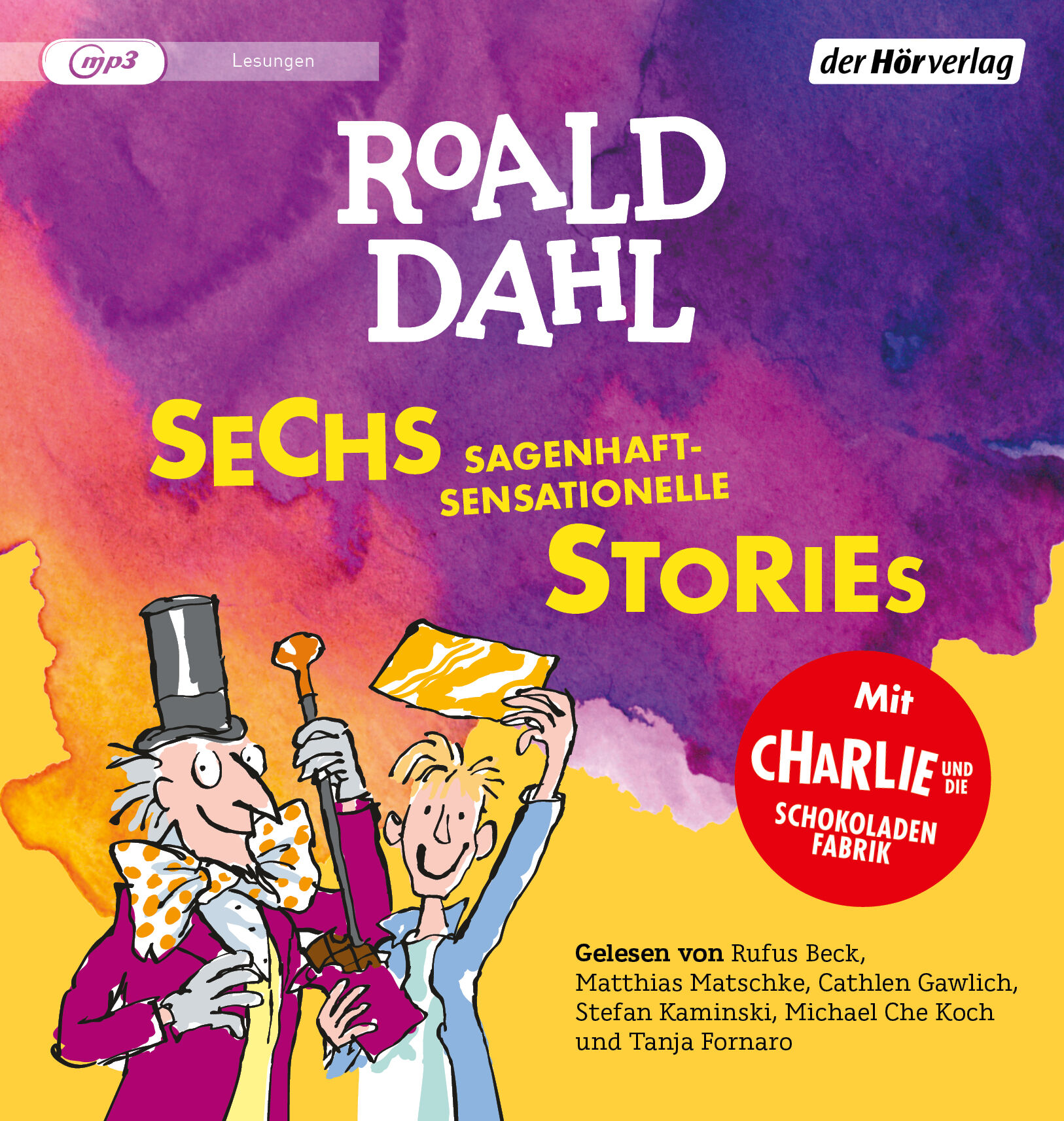 Roald Dahl ist einer der bekanntesten, kultigsten und bestverkauften Kinderbuchautoren der Welt. Diese Sammlung enthält sechs Geschichten für Kinder ab 8 Jahren, darunter den Lieblingstitel »Charlie und die Schokoladenfabrik«, bekannt aus dem Kino. Die Box ist damit der perfekte Einstieg in die wunderbare Welt von Roald Dahl. Hier trifft das Publikum auf schlaue Tiere, die gegen Bauspekulanten kämpfen, auf gierige Großmütter, auf rasant wachsende Schildkröten und gigantische Früchte, auf Weltmeister im Wildern - und natürlich auf den wahnsinnigen, genialen Willy Wonka.Neu übersetzt von Andreas Steinhöfel sowie von Sabine und Emma Ludwig, und ungekürzt gelesen.Enthält:»Charlie und die Schokoladenfabrik«, »Der fantastische Mr. Fox«, »James und der Riesenpfirsich«, »Mister Hoppys Geheimnis«; »Danny, der Weltmeister« und »George und das Wundermittel«