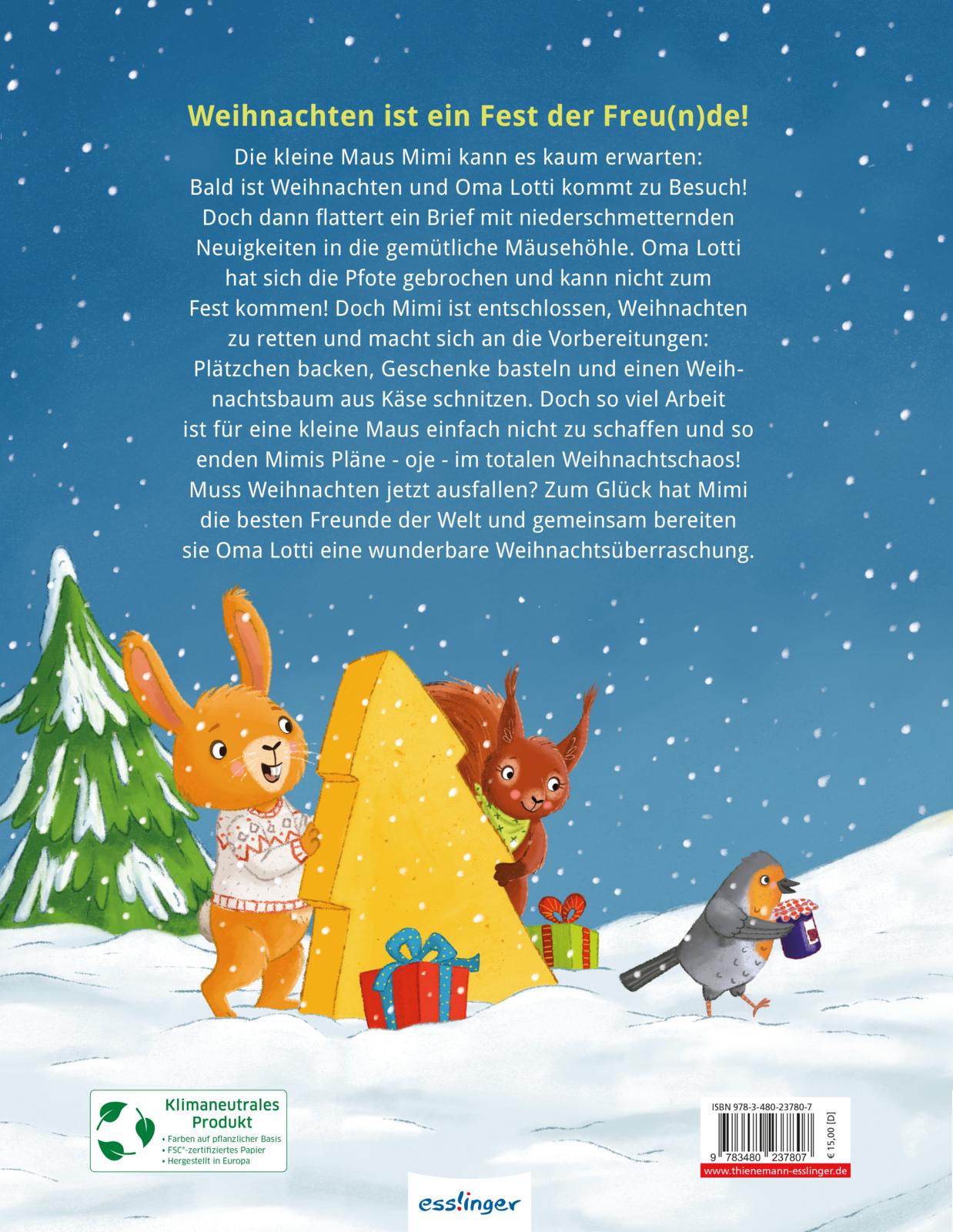 Die kleine Maus Mimi kann es kaum erwarten: Bald ist Weihnachten und Oma Lotti kommt zu Besuch! Doch dann flattert ein Brief mit niederschmetternden Neuigkeiten in die gemütliche Mäusehöhle. Oma Lotti hat sich die Pfote gebrochen und kann nicht zum Fest kommen! Doch Mimi ist entschlossen, Weihnachten zu retten und macht sich an die Vorbereitungen: Plätzchen backen, Geschenke basteln und einen Weihnachtsbaum aus Käse schnitzen. Doch so viel Arbeit ist für eine kleine Maus einfach nicht zu schaffen und so enden Mimis Pläne - oje - im totalen Weihnachtschaos! Muss Weihnachten jetzt ausfallen?