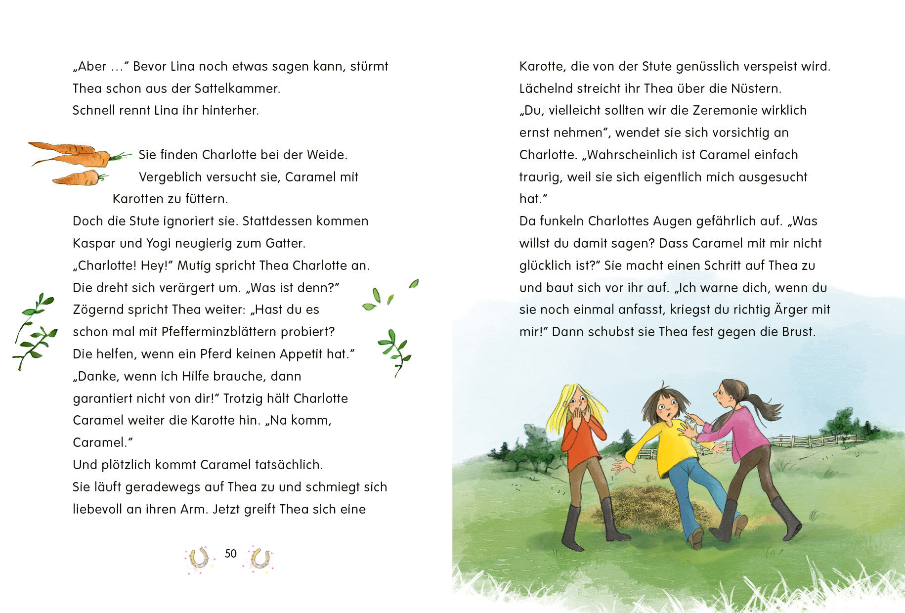 Lina freut sich so: Ihre neue Freundin Thea darf mit zum Reiten kommen! Lina will ihr alles zeigen - natürlich die tollen Ponys und vielleicht sogar das große Geheimnis rund um den magischen Ponyhof Zauberhufe! Doch Charlotte ist eifersüchtig und richtig gemein zu Thea, bis die nur noch nach Hause möchte. Zum Glück haben Lina und ihr Chaos-Pferd Kaspar, mit dem sie sich auf zauberhaft-magische Weise richtig unterhalten kann, schon einen ponystarken Plan, um Thea und ihrem Lieblings-Pony Caramel zu helfen ...Ein spannendes und zauberhaftes Lesevergnügen zum Selberlesen für Kinder ab 7 JahrenDie 4. Lesestufe zum Einfach-selbst-Lesen von Penguin JUNIOR:- Ideal für geübte Leseanfängerinnen und Leseanfänger ab der 2. Klasse