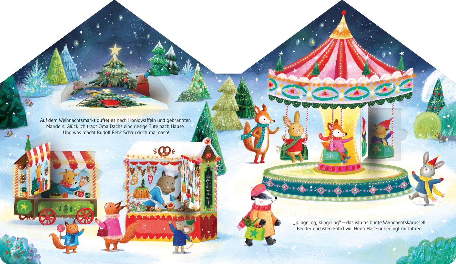 Die Tiere freuen sich schon auf das gemeinsame Fest am Heiligen Abend. Doch es muss noch allerhand vorbereitet werden. Und was sonst an Weihnachten streng verboten ist: Hier darf man hinter alle Türen und Fenster schauen - Klappe auf und mitgemacht!