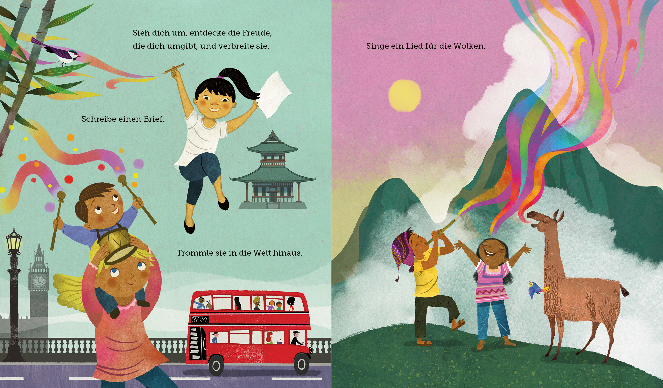 Freude gibt es überall. Selbst wenn sie sich manchmal versteckt, ist sie immer in deiner Nähe. Du musst dich nur umsehen und die Augen offenhalten, dann wirst du sie entdecken: Freude ist das kribbelnde Gefühl, wenn die Sonne dich morgens an den Füßen kitzelt. Es ist dieses trudelnde, taumelige Gefühl, wenn du mit jemandem herumalberst. Und Freude ist das überschäumende, federleichte Gefühl, einen guten Freund oder eine gute Freundin zu finden. Freude hat eine Superkraft, denn wenn du sie mit anderen teilst, wird sie immer größer. Dann reist sie hoch am Himmel quer über den Ozean und erfüllt die ganze Welt mit diesem wohlig-warmen Glücksgefühl. Seine Heiligkeit der Dalai Lama und Erzbischof Desmond Tutu haben ein bezauberndes Buch über die Freude geschrieben, die jedes Kind in sich trägt. Die beiden Freunde zeigen in diesem bestärkenden Bilderbuch anhand ihrer eigenen Kindheit auf, wie wir Freude finden, bewahren und vergrößern können, indem wir sie mit Menschen auf der ganzen Welt teilen.