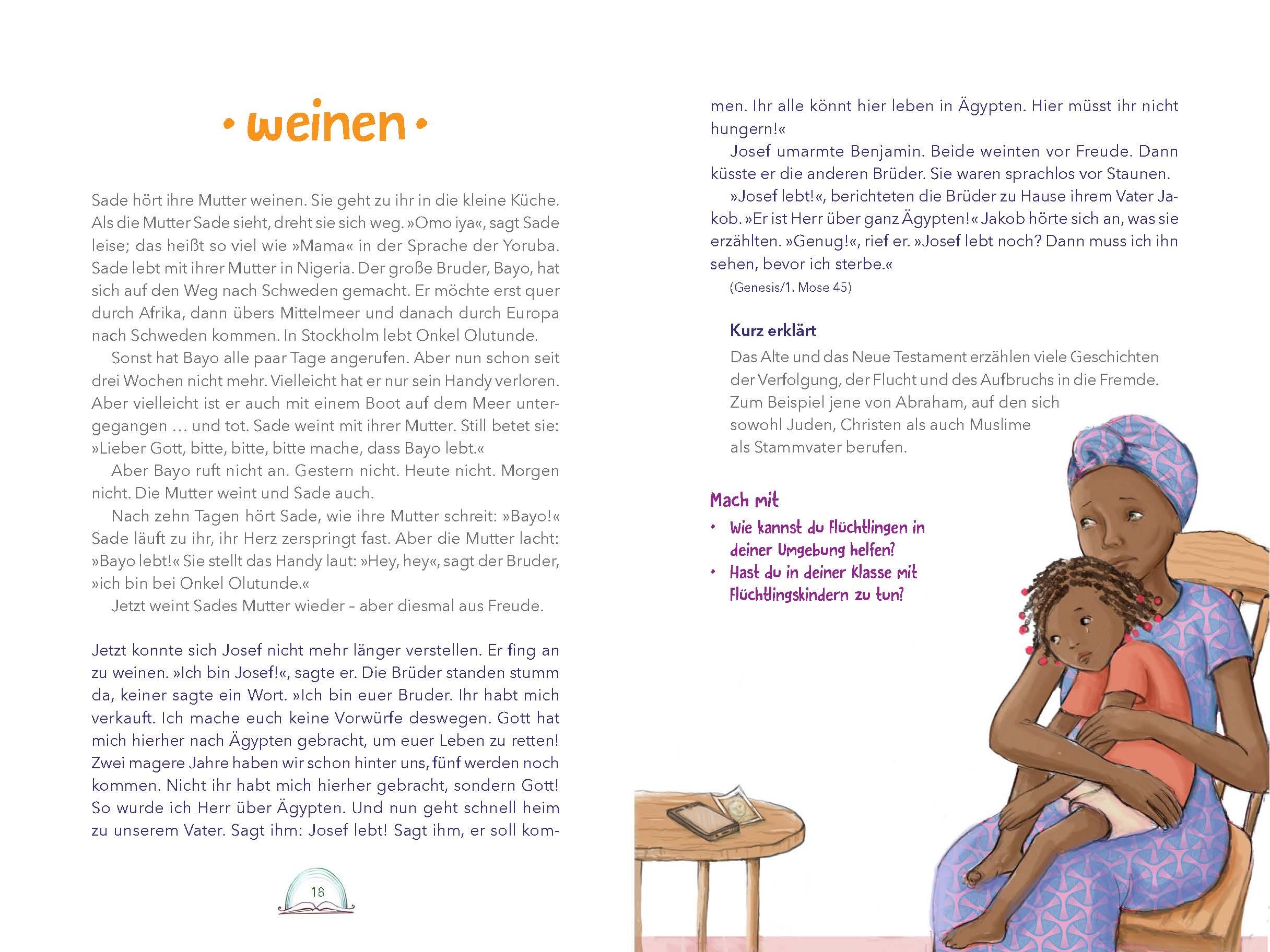 Das Konzept von Bibelbüchern für Kinder wird hier vom Kopf auf die Füße gestellt: Gewöhnlich erzählen Kinderbibeln biblische Geschichten in einfacher Sprache und führen Kinder so an biblische Themen heran. Hier ist es genau umgekehrt: Die Lebensthemen von Kindern sind die Ausgangspunkte, die mit biblischen Geschichten verknüpft werden. Denn in der Bibel geht es genau wie in Familien um anfangen, angeben, bitten, feiern, hören, lachen, streiten, tanzen, träumen, versöhnen, vertrauen, zusammenhalten u.v.m. So ergibt sich ein Kaleidoskop des Glaubens, entwickelt aus Alltagserfahrungen, die jedes Kind kennt. Ein Buch für die gemeinsame Zeit in Familie oder Kindergarten und Kindergottesdienst und natürlich auch zum Selbstlesen.