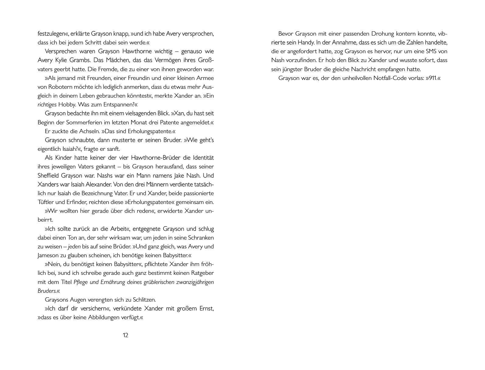 ***Je nach Verfügbarkeit wird das Buch mit oder ohne Farbschnitt geliefert. Der gestaltete Buchschnitt ist auf eine limitierte Stückzahl begrenzt.***Grayson Hawthorne ist als Kronprinz des milliardenschweren Familienunternehmens herangewachsen, doch der Patriarch ist verstorben, die Familie enterbt, das Vermögen dahin. Und so hat er es sich zur Aufgabe gemacht, jeden Schaden von Avery, der Erbin, fernzuhalten. Als Ermittlungen zum Tod seines Vaters aufgenommen werden, bringt sie das allerdings in höchste Gefahr. Jameson Hawthorne ist abenteuerlustig und eine echte Spielernatur. Als sich plötzlich sein verschollener Vater bei ihm meldet und einen riskanten Gefallen erbittet, kann Jameson nicht widerstehen. Beide Hawthorne-Nachkommen werden vor schier unlösbare Aufgaben gestellt, doch an ihrer Seite stehen dabei ihre Brüder und Avery.