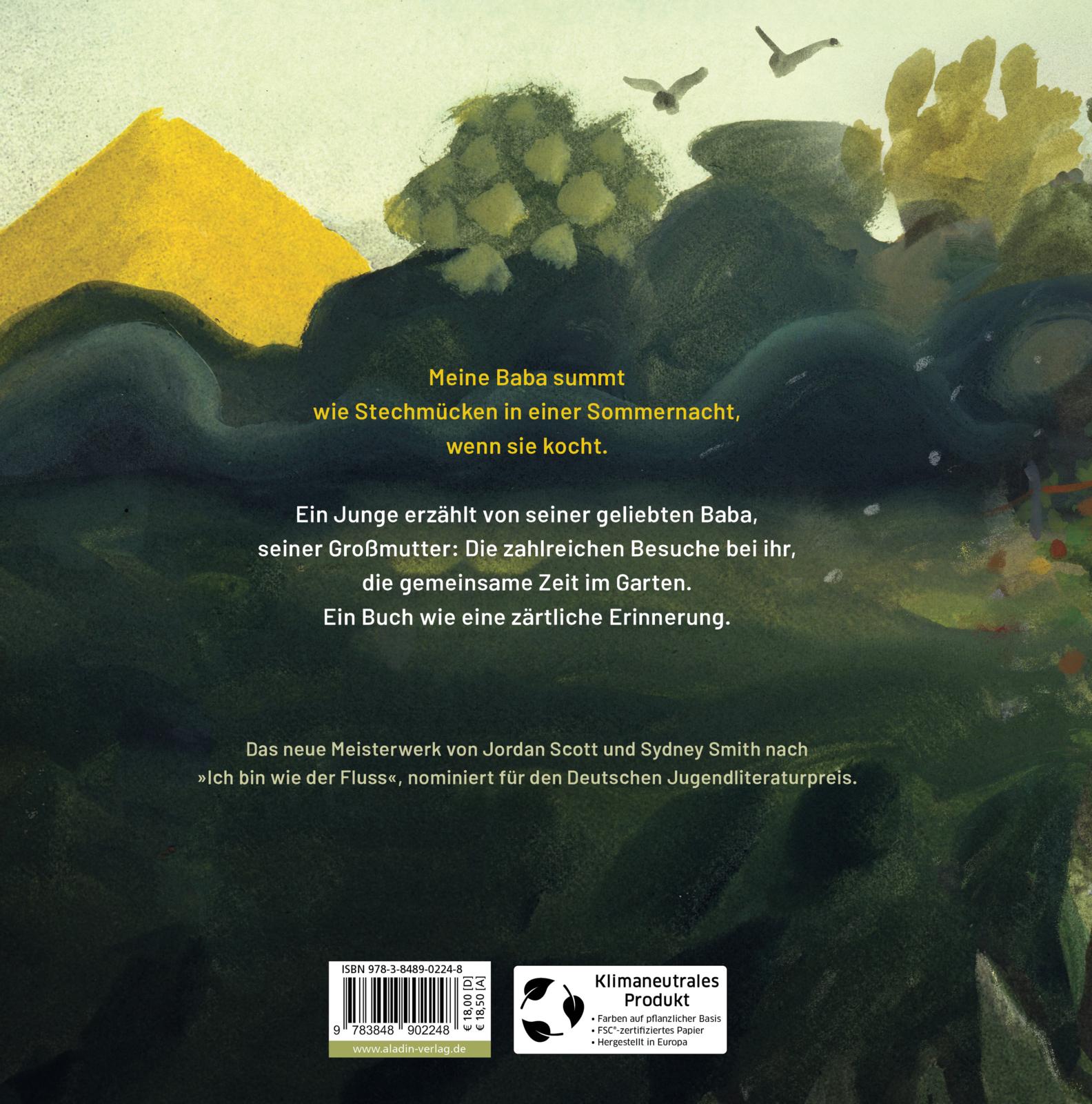 "[...] Enkel und Großmutter verständigen sich in Blicken und Gesten und in dem stummen Einverständnis der Zuneigung. Mit unglaublicher Intensität hält Smith dies in seinen variationsreichen Gouachen und Aquarellen fest. In einer Kinderzeichnung, die die Perspektive des Jungen einnimmt, in großartigen Bildausschnitten wie dem Profil von Babas Gesicht, in Tableus mit vielen Details. Selten sind großmütterliche Liebe und Wärme so gefeiert worden wie in diesem poetischen Buch."
