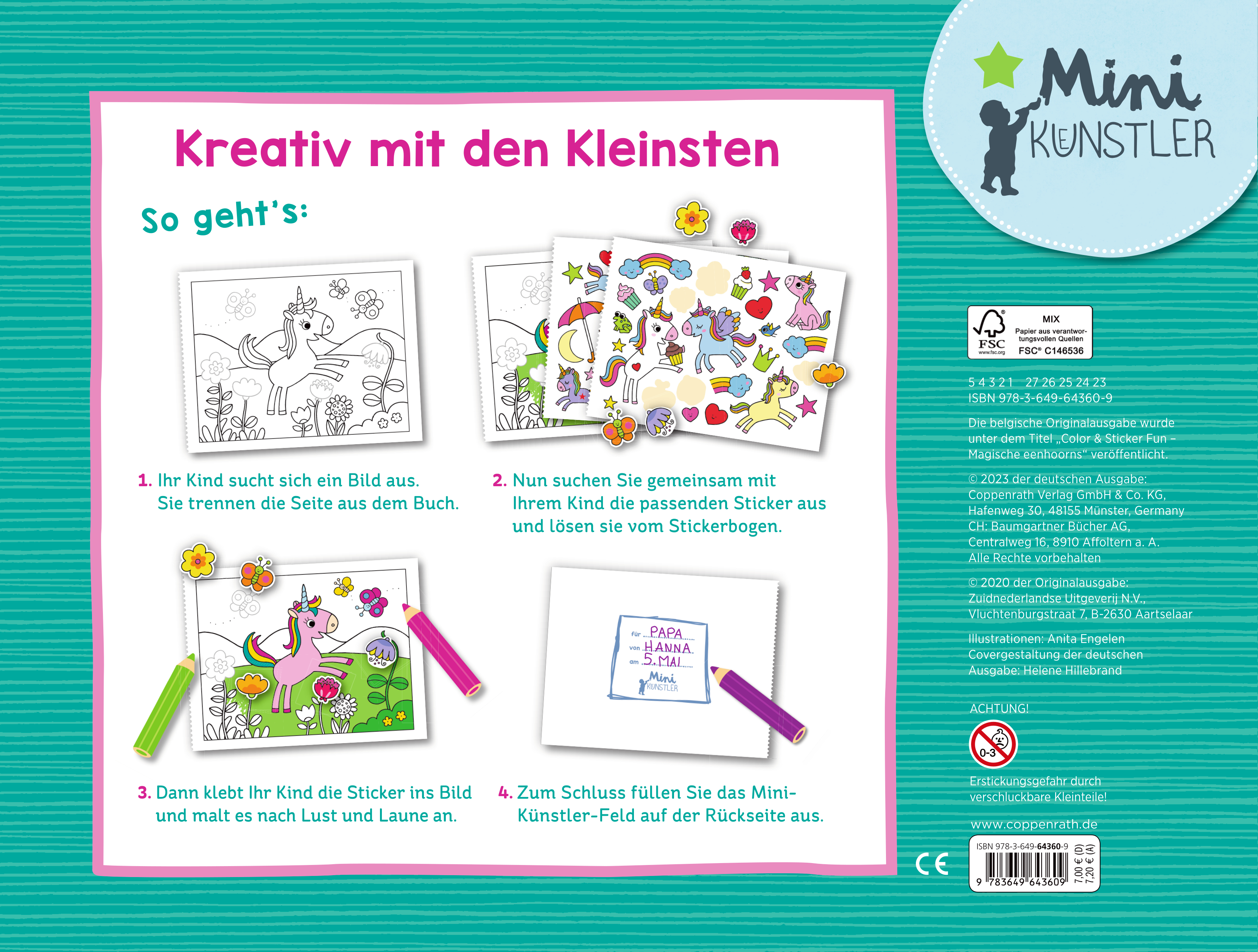 | Schlagworte | Einhörner • Kindergarten • Malbuch ab 4 • Mini Künstler • Mini-Künstler • Sticker |