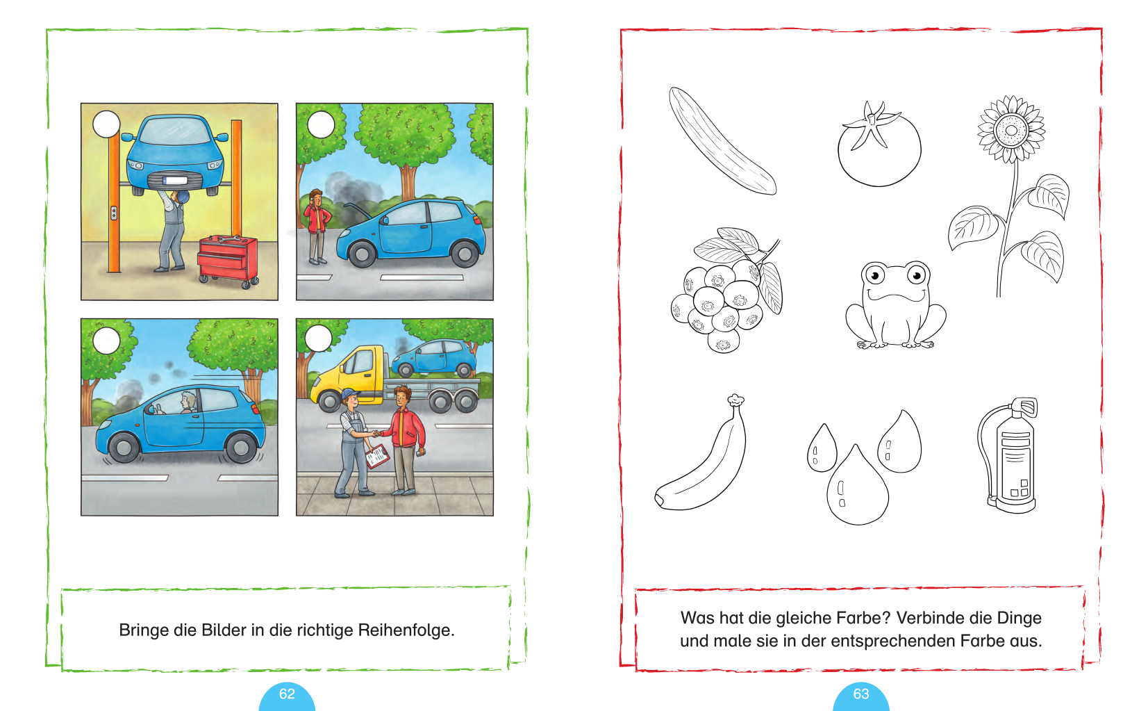 - Mit vielen bunten Aufgaben, die im kindlichen Umfeld oder in einer spannenden Tierwelt spielen.