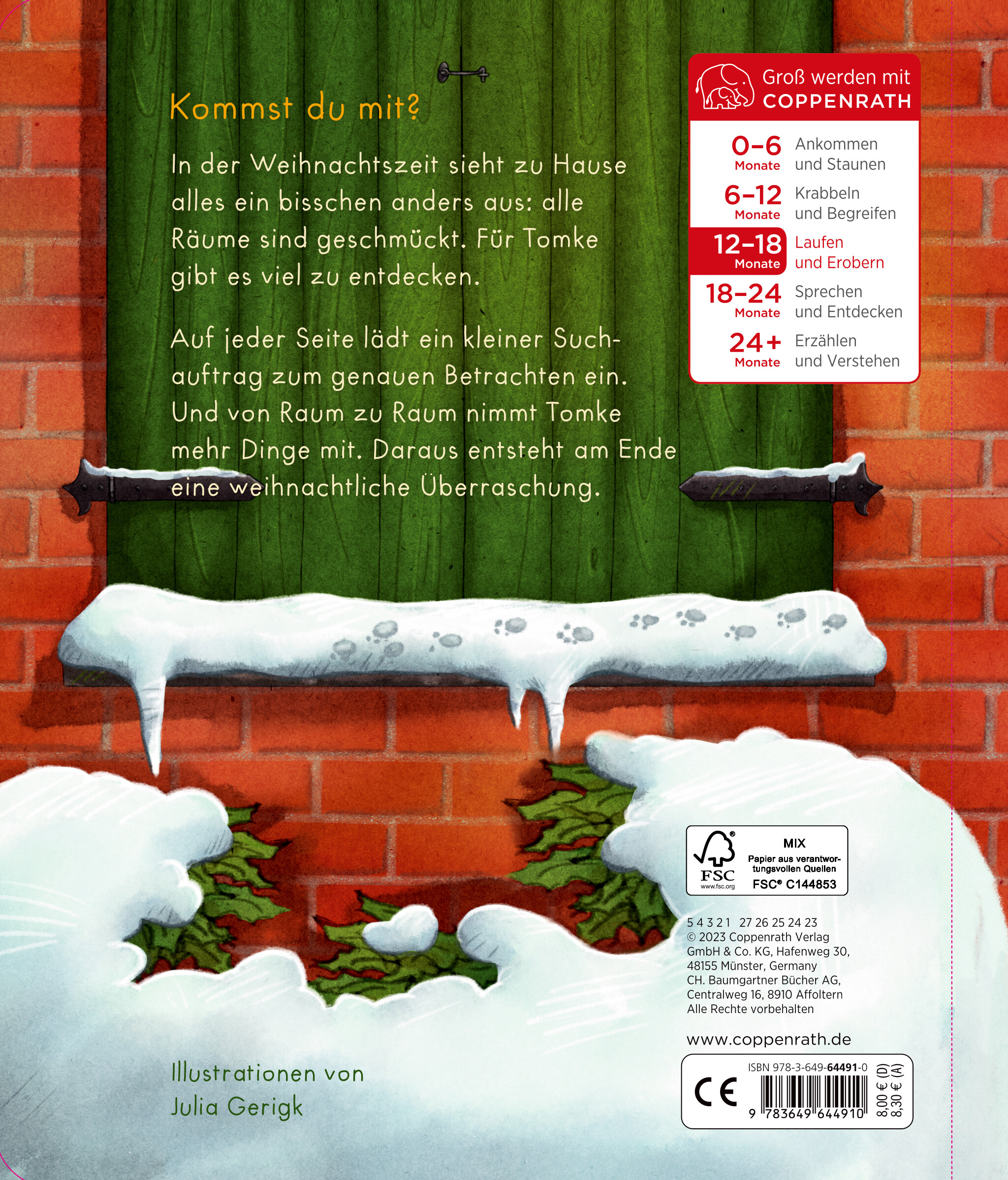 | Schlagworte | Advent • Aufmachen • Entdecken • hineinschauen • Klappbuch • Klappen • Kleinkind • Pappbilderbuch • Pappbuch • reinschauen • Schrank • Suchen • Tür • Türen • Verstecken • Weihnachten • Weihnachtshaus • Wimmel • Wimmeln |