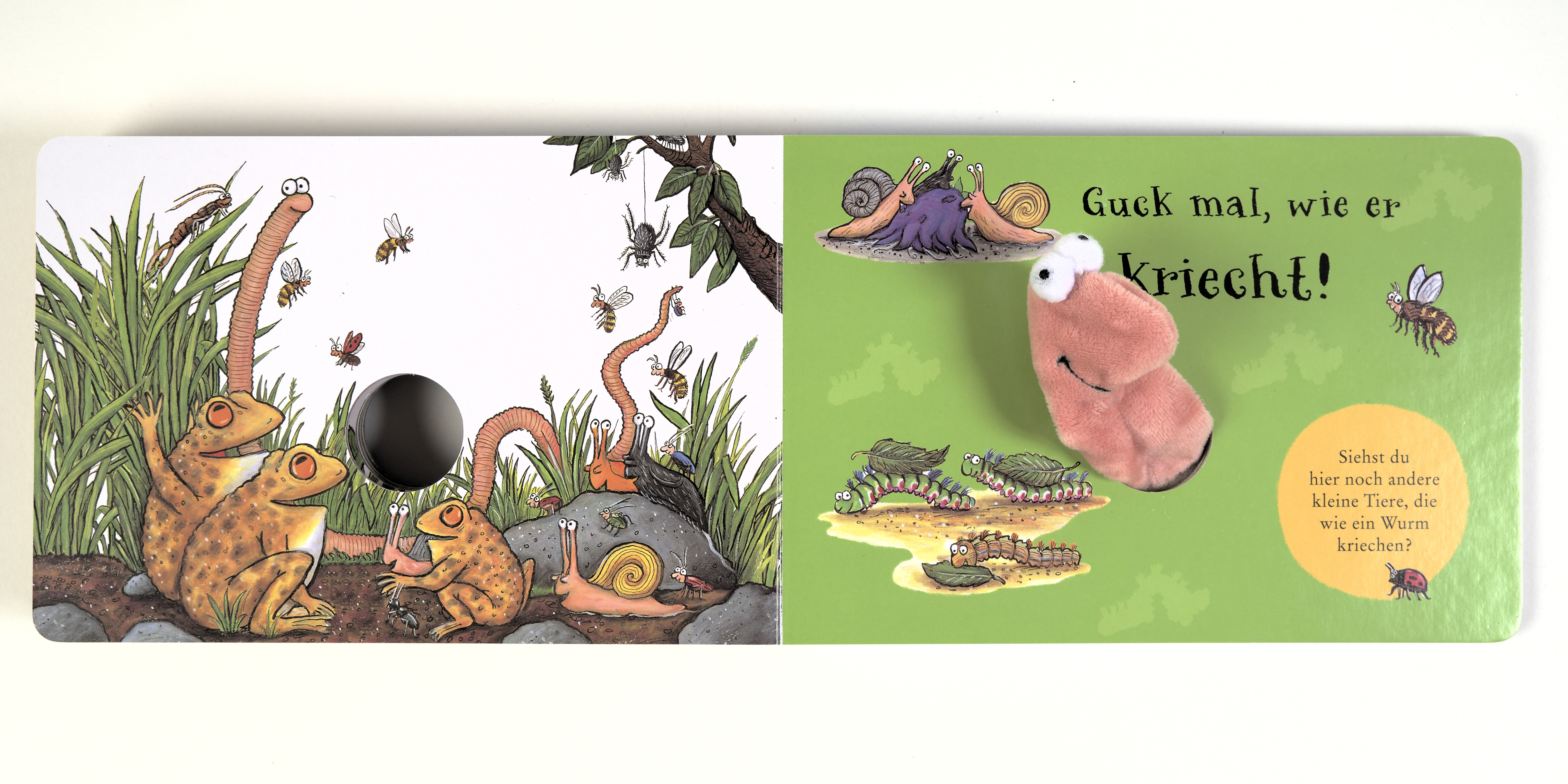 Superwurm, der Superheld, ist der tollste Wurm der Welt! Guck mal, was Superwurm alles kann! Kannst du auch krabbeln und kriechen wie ein Wurm? Ein lustiges Fingerpuppenbuch zum Spielen.Das stabile Pappbilderbuch mit integrierter Fingerpuppe ist für kleine Kinder ab 18 Monaten. Das fördert Koordination und Feinmotorik und macht großen Spaß. Eine Spielpappe, nach den Motiven des Bilderbuchklassikers, von den weltberühmten Schöpfern des Grüffelo.