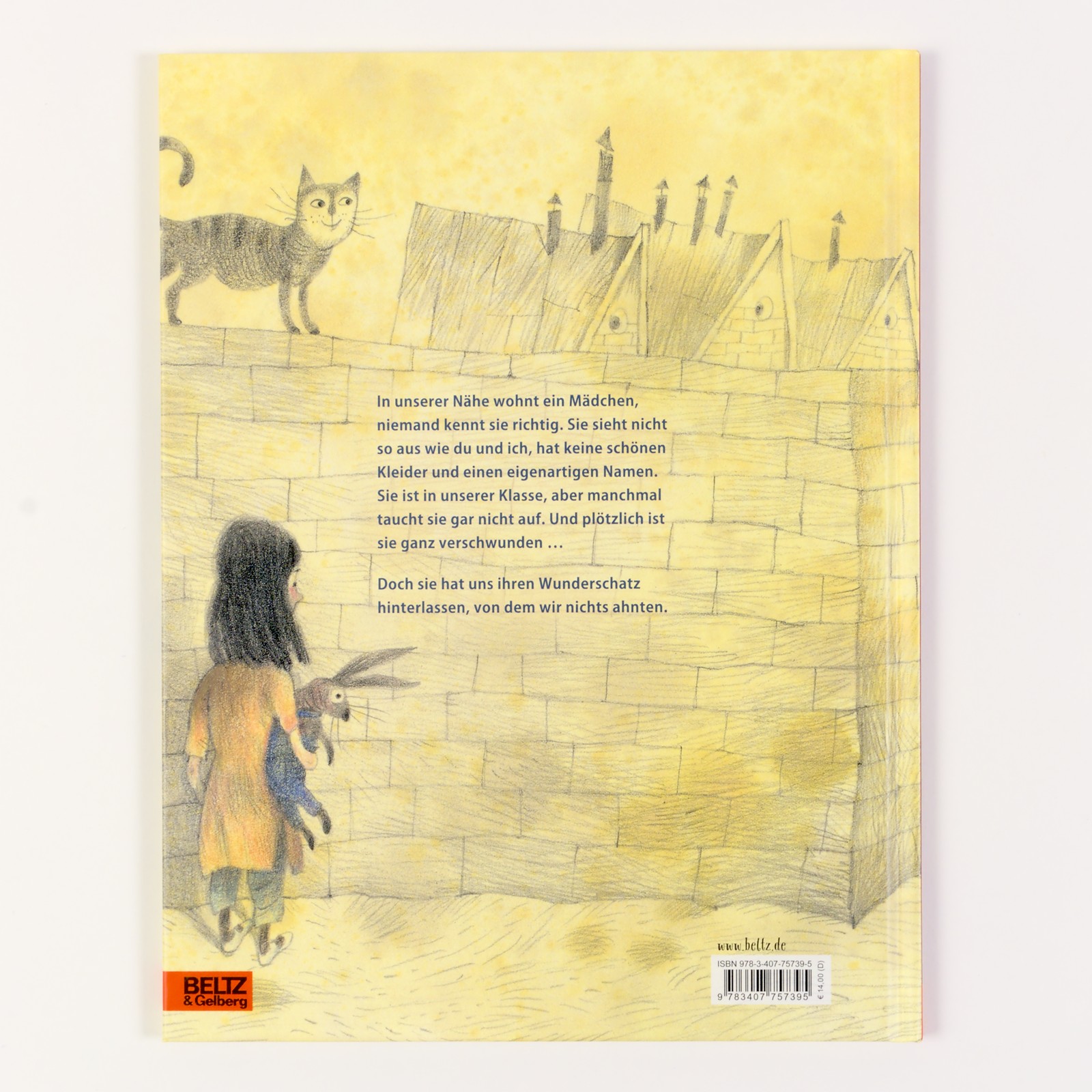 In unserer Nähe wohnt ein Mädchen, sie hat keine schönen Kleider, kein Kinderzimmer, eigentlich hat sie nicht mal einen richtigen Namen, oder zumindest keinen, den wir aussprechen können. Und jetzt ist sie plötzlich ganz verschwunden. Doch sie hat uns einen Schatz zurückgelassen, von dem niemand etwas ahnte. Immer wieder gibt es Kinder, die übersehen werden, die von Sprachbarrieren, Armut oder Anderssein betroffen sind. Der berührende Text und die zarten Bilder dieses Bilderbuches erzählen ohne zu beschönigen, wie Diskriminierung entsteht und regen zur Reflektion an.
